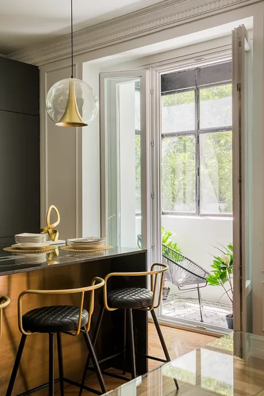 La intención siempre fue la de rescatar todos los elementos antiguos y originales del piso y agregar los que con los años habían desaparecido, y combinarlos con un interiorismo arriesgado pero atemporal, buscando una nota de inspiración art decó, con un estilo que recordaba a Gatsby.