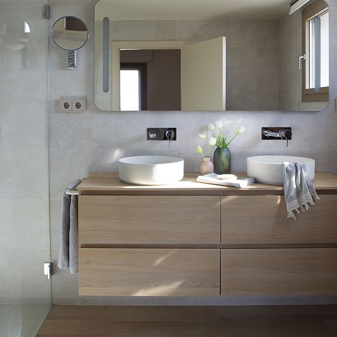 Respecto al uso, esto depende mucho del número de baños y la dinámica del hogar. Por ejemplo, en un aseo de cortesía ubicado lejos de las habitaciones no existe, a priori, necesidad de instalar un doble lavabo. Este sistema aporta valor en aquellos que se utilizan a diario para el cuidado personal.