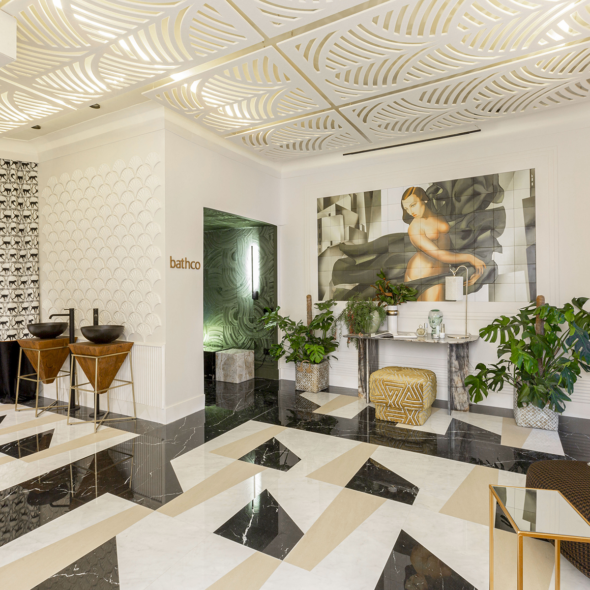 AtelierBathco estuvo presente en CasaDecor en la edición de 2020 de la mano de Virginia Sánchez en un espacio que rinde homenaje a la artista Tamara de Lempicka, una de las cabezas visibles del Art Decó Neoyorkino.