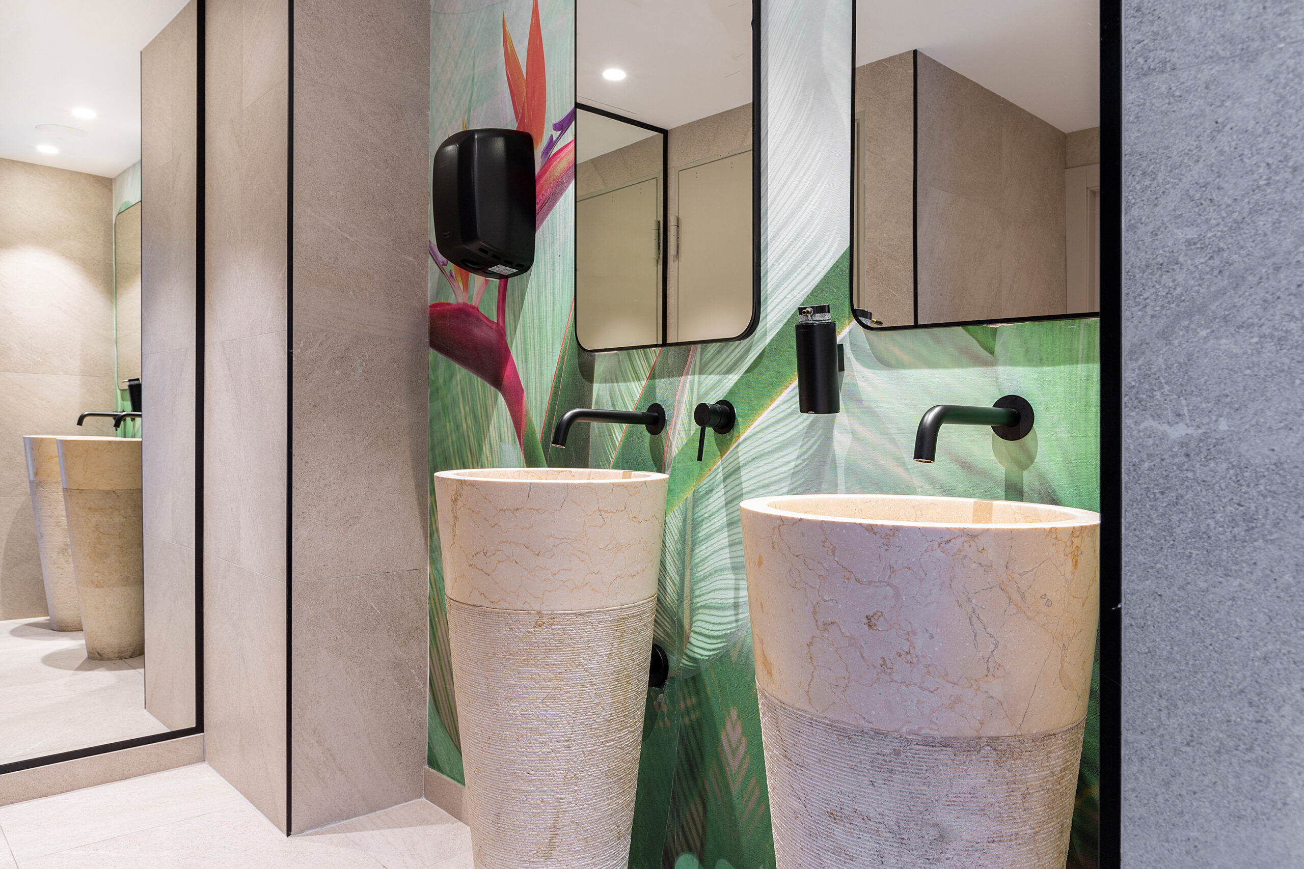 Su renovación y modernización cambió radicalmente su imagen, eligiendo productos de calidad y estéticamente atractivos. Adquirió gran importancia el mármol, muy presente en los baños de las habitaciones donde se puede ver el lavabo rectangular Olea de Bathco.
