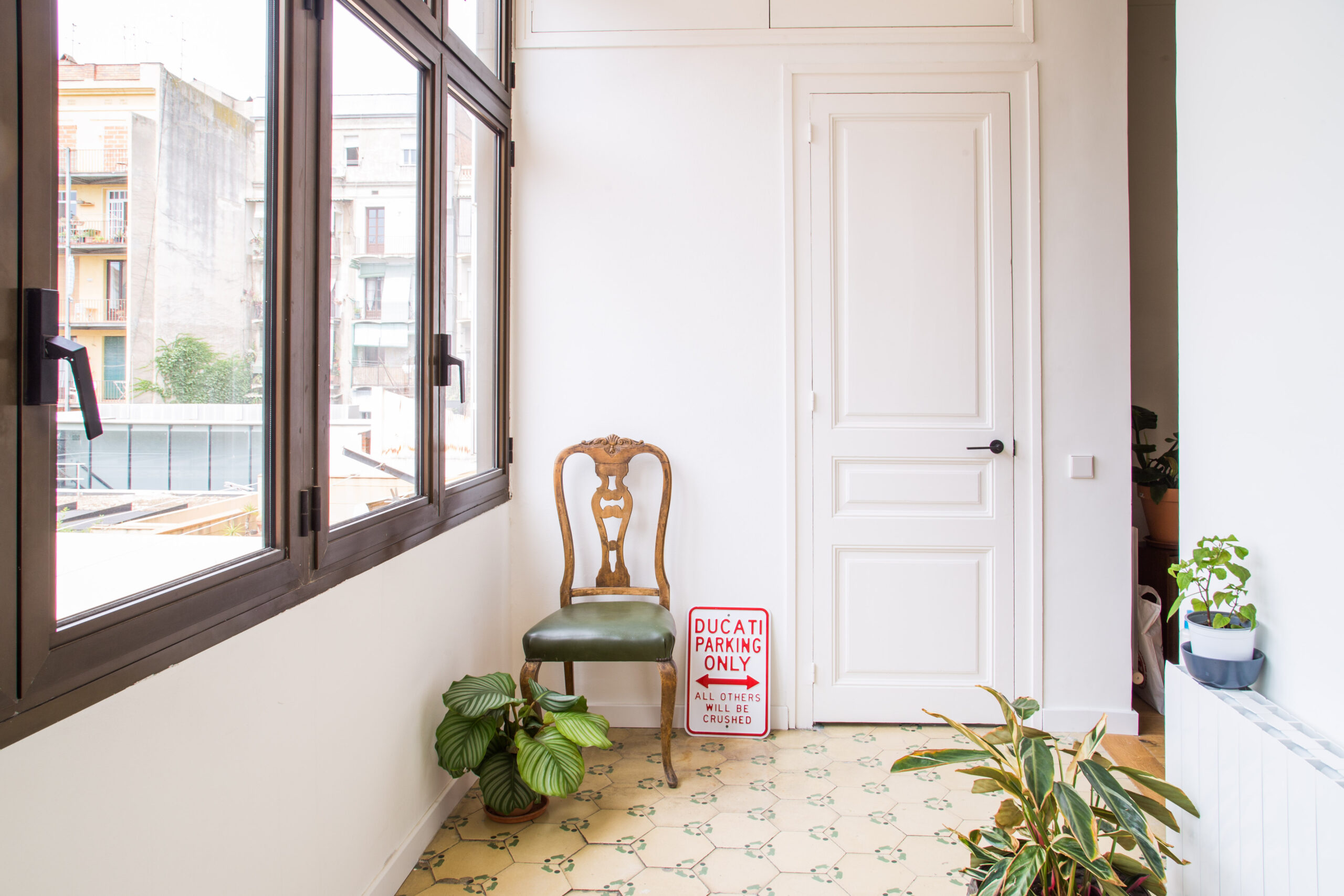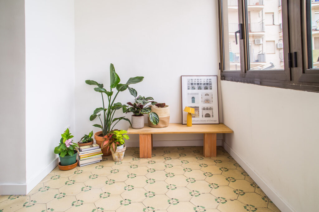 Al ingresar a la vivienda, uno se encuentra con una sensación de autenticidad y tradición constructiva barcelonesa. Los techos con molduras y rosetones, los hermosos pavimentos hidráulicos con sus variados diseños y las carpinterías originales de madera dan testimonio de la historia que se respira en cada rincón. MADE BCN tomó la decisión indiscutible de conservar y reaprovechar al máximo estos elementos, convirtiéndolos en el protagonista del diseño.