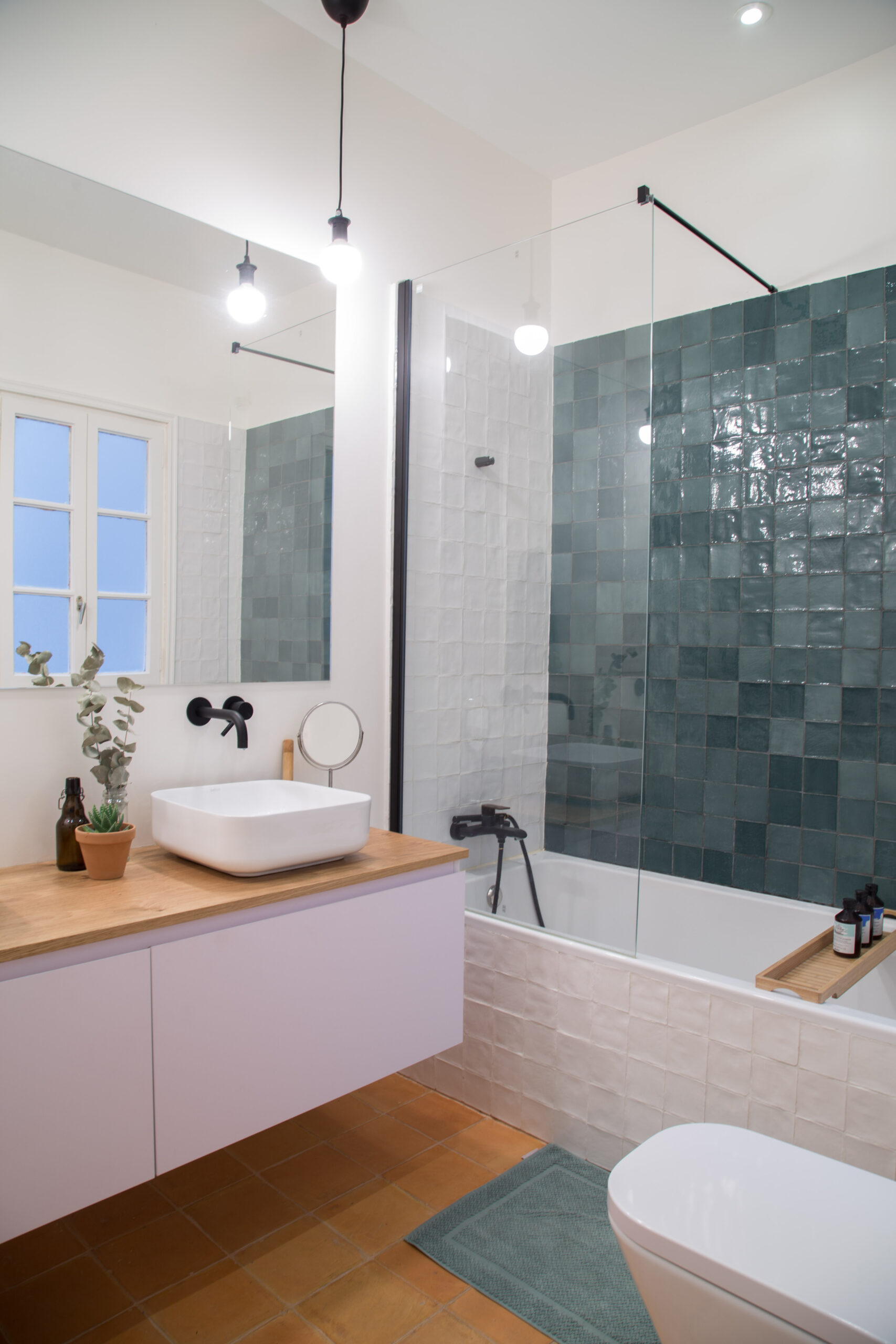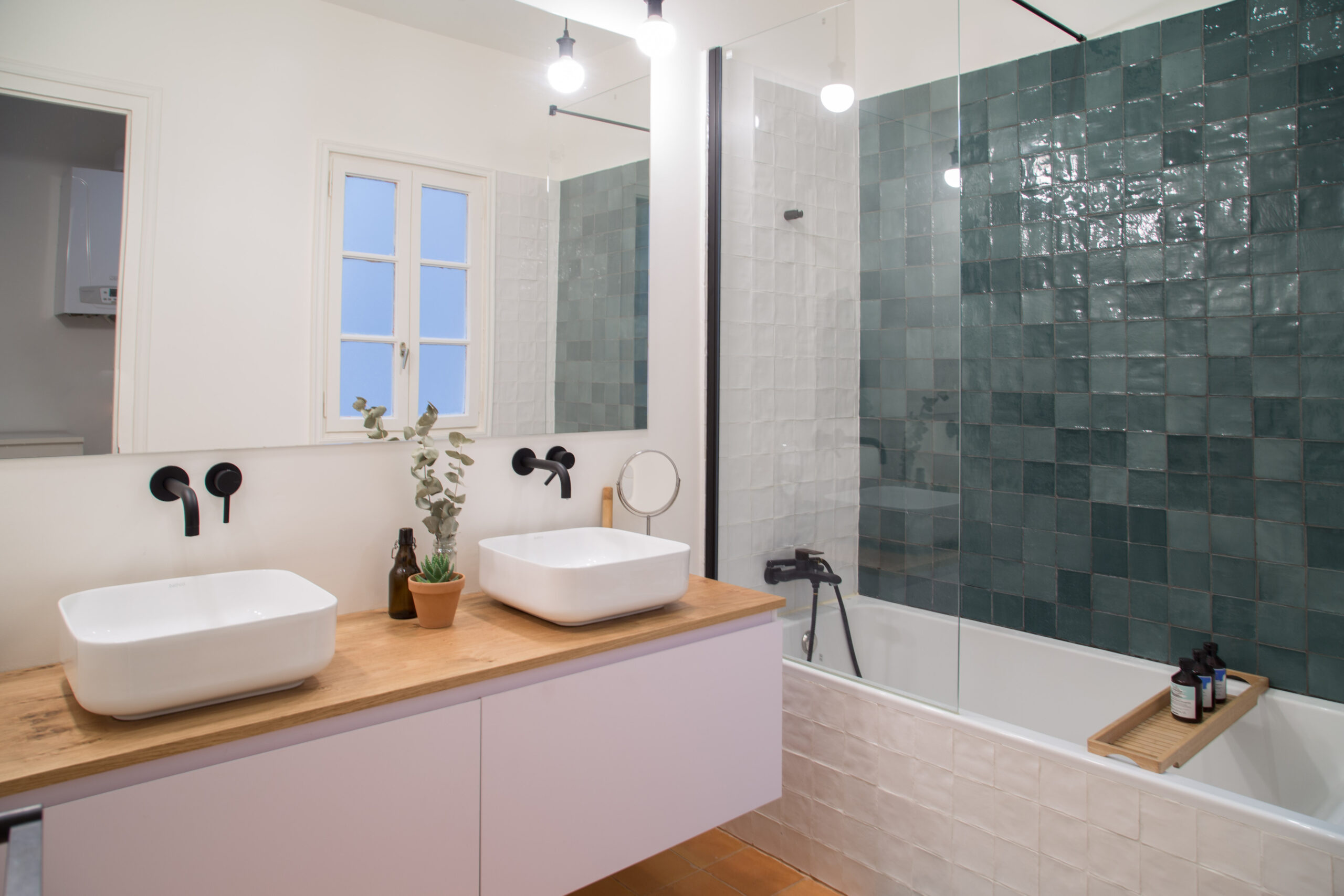 El proyecto de interiorismo logra una máxima funcionalidad sin desvirtuar la configuración original de la vivienda. El baño es uno de los espacios que más se ha adaptado, cada elemento nuevo, como el lavabo Dinan, se integra cuidadosamente en el entorno. No compromete la esencia, ni la historia de la vivienda.