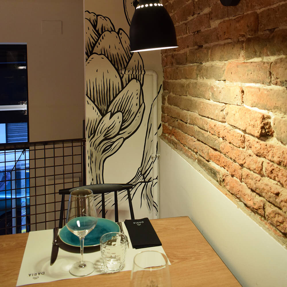 Projects, HospitalityDARIA es el nuevo restaurante de Nacho del Corral en Santander que Bathco Atelier ha intervenido. El trabajo consta de tres piezas murales, dos piezas cerámicas y dos lavabos decorados.