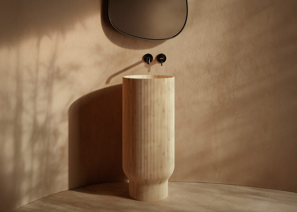 La pieza más destacada de esta nueva apuesta sostenible es el lavabo pedestal Kalasin, una pieza de diseño minimalista inspirada en la naturaleza para su creación.