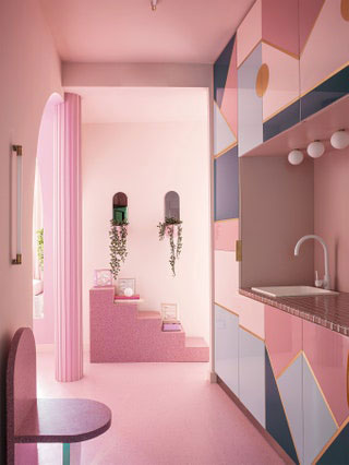 Si yo quiero hacer un espacio que me recuerde al futuro y quiero que me recuerde a los años 60 pues las formas que utilizaré serán curvas, las cosas serán más naíf, el color será un poco más glossy, porque en esa poca se usaban ese tipo de colores, incluso colores más femeninos como el rosa, un azul añil.