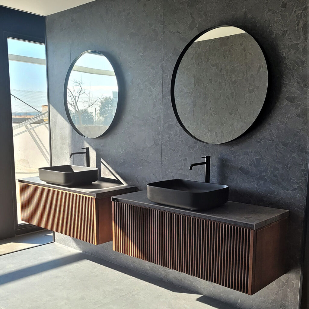 La colección mate de Bathco también tiene cabida en este espacio. Dos lavabos Dinan rectangular en negro y el inodoro suspendido New Ronda/Antequera se pueden ver en una ambientación donde las tonalidades grises y la madera son los protagonistas.Con este showroom, Oliveras pretende mostrar a constructores, arquitectos, interioristas y decoradores los materiales y las técnicas que se pueden aplicar a sus proyectos. Puedes visitarlo en Avenida Barcelona nº 6, Figueras (Gerona).