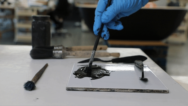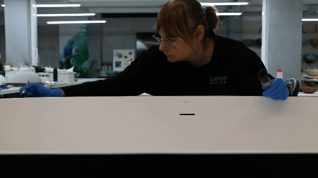 The bañera Pretoria ha sido intervenida por el exterior por el Atelier de Bathco pintando su exterior de color negro.