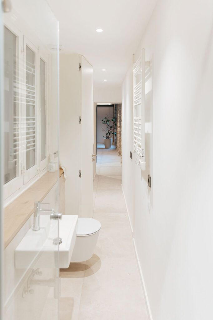 Los sanitarios suspendidos han ganando terreno en el baño. No tienen pie y están fijados en la pared y esto les da una gran ligereza visual, por lo que son perfectos para baños pequeños. Así lo podemos comprobar en los baños de la reforma realizada en la Plaça del Vi de Almeda Studi y en “El viejo taller de un carpintero” de FFWD arquitectos.