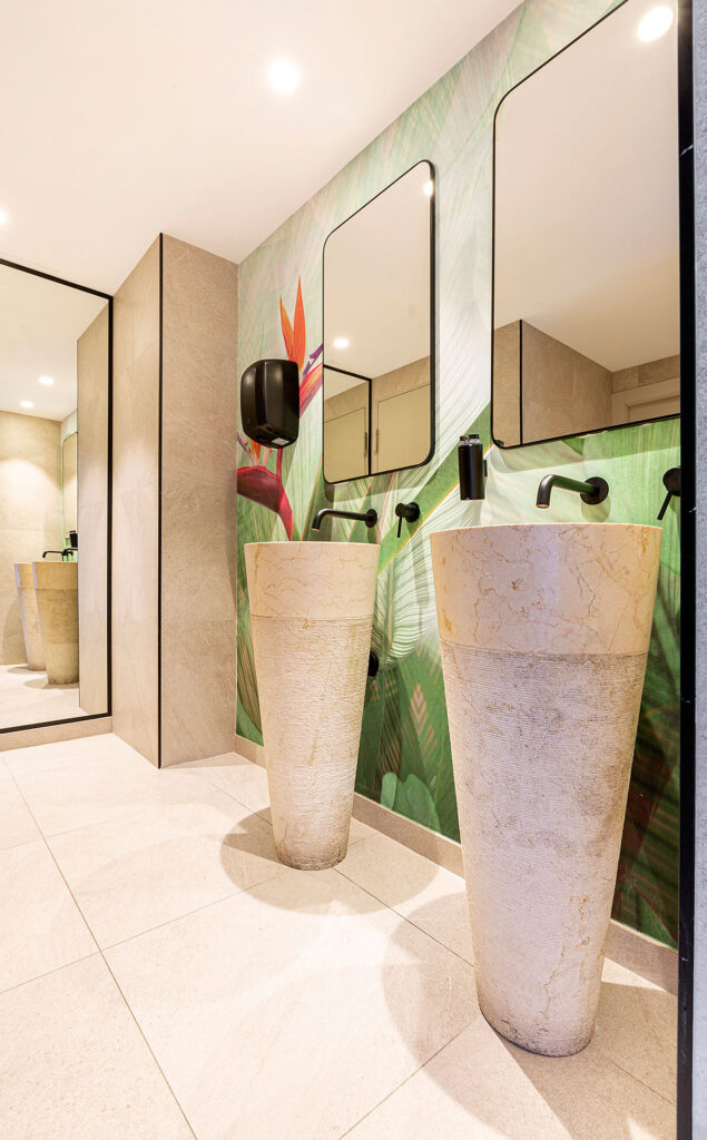 Todos y cada uno de los espacios se han tratado con el mismo detalle y cuidado.  El baño juega un papel importante en la experiencia del cliente y debe reflejar una estética cuidada y un buen equipamiento.