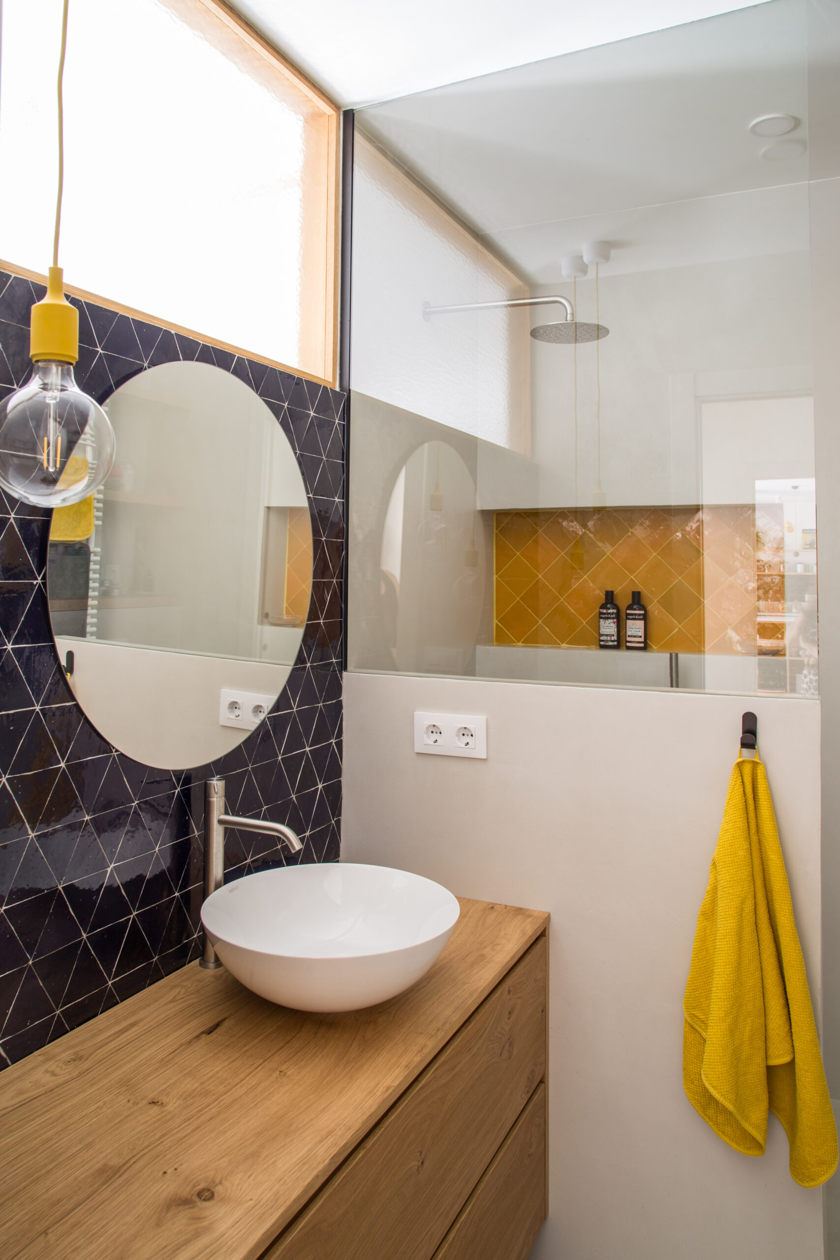 En el baño, se ha instalado un lavabo New Lys de Bathco, aportando un toque de diseño moderno y sofisticado a la estancia.