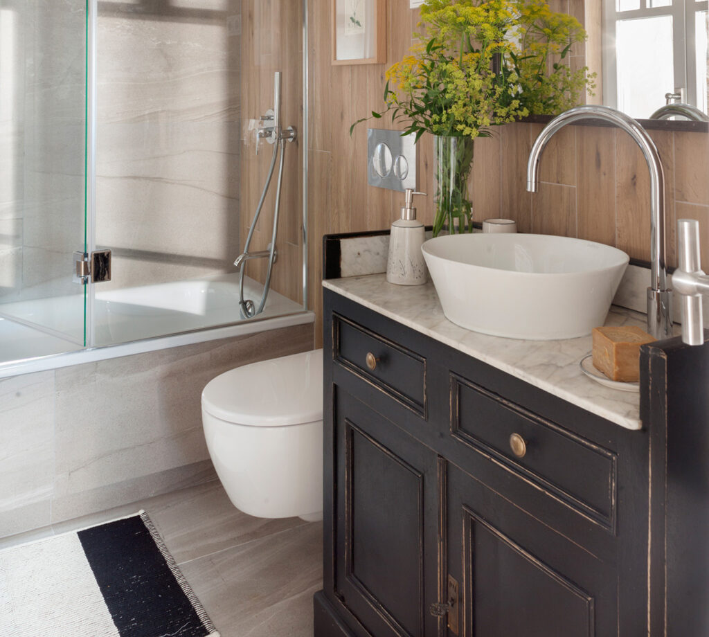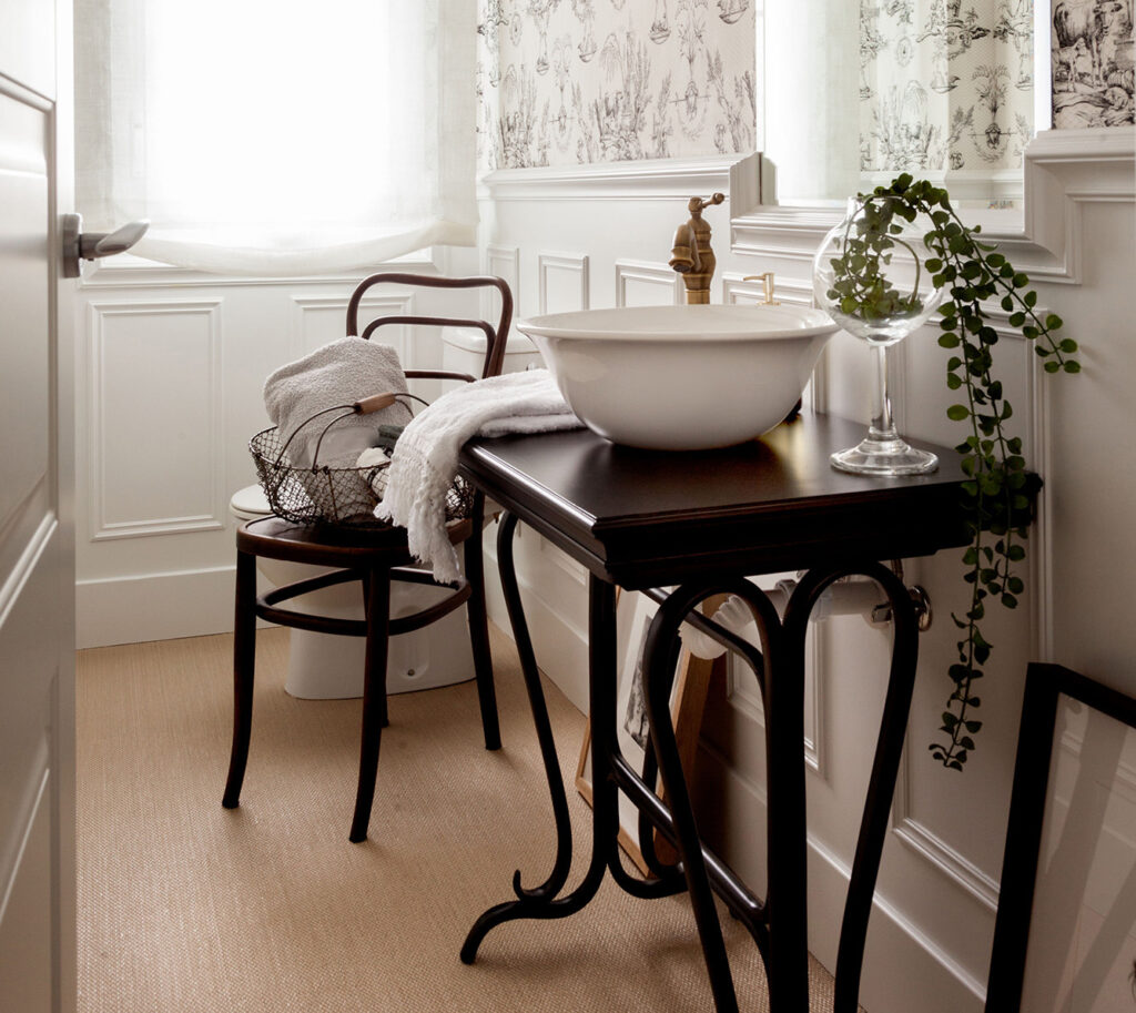 “¿Un detalle curioso? En el aseo de invitados utilizamos una cómoda antigua como mueble de baño” Natalia Zubizarreta.