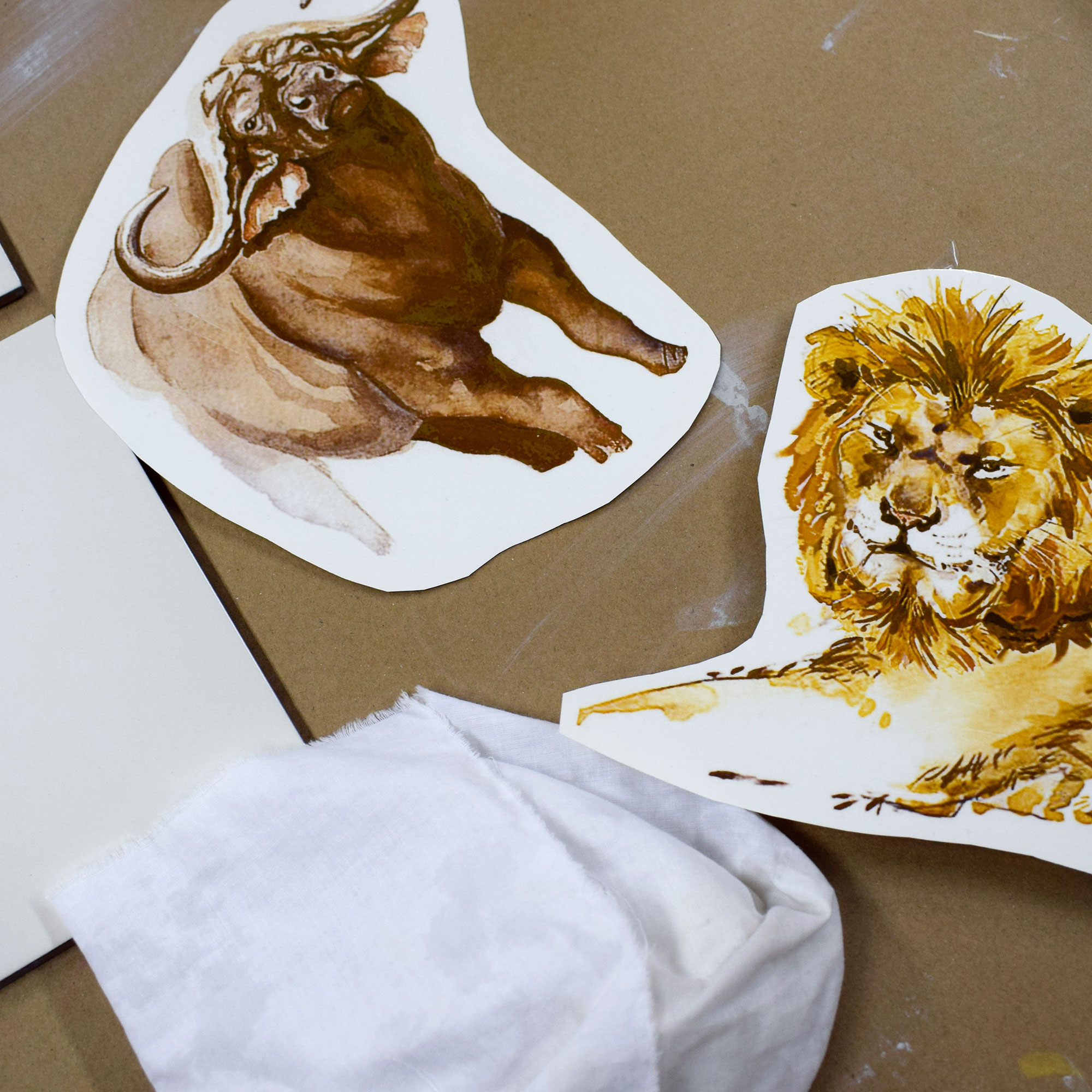 Los artistas del Atelier tomaron como referencia las distintas especies que habitan en el parque para comenzar a trabajar empleando las últimas tecnologías aplicadas a la cerámica así como con la tradicionalpintura a base de pigmentos vitrificables. Bocetos a lápiz iluminados a mano, programas informáticos de diseño, pinceletas japonesas, mezclas de aceites, colores en polvo y la magia de loshornos de alta temperatura han sido útiles para representar a los animales en distintas actitudes y con un tratamiento de dibujo suelto y mancha acuarelada que juegan a poblar el espacio.