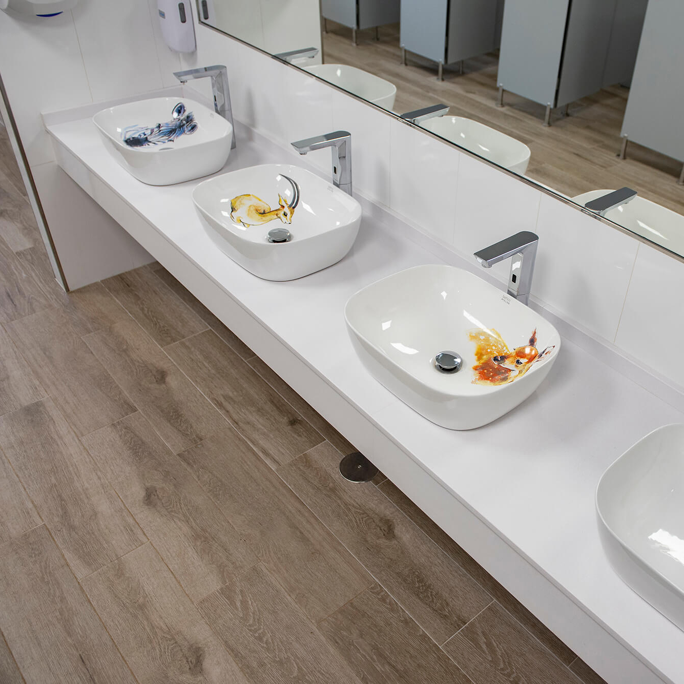 Los baños del Restaurante Los Osos guardan uno de los proyectos más especiales que ha desarrollado el equipo de Bathco Atelier. El Parque de la Naturaleza de Cabárceno es un referente mundial y la fauna que alberga ha resultado ser una de las mejores inspiraciones para los artistas.El trabajo del Atelier impulsa la experiencia fascinante que resulta visitar las instalaciones de Cabárceno trasladando a sus animales más representativos a los baños por medio de ilustraciones sobre la cerámica.