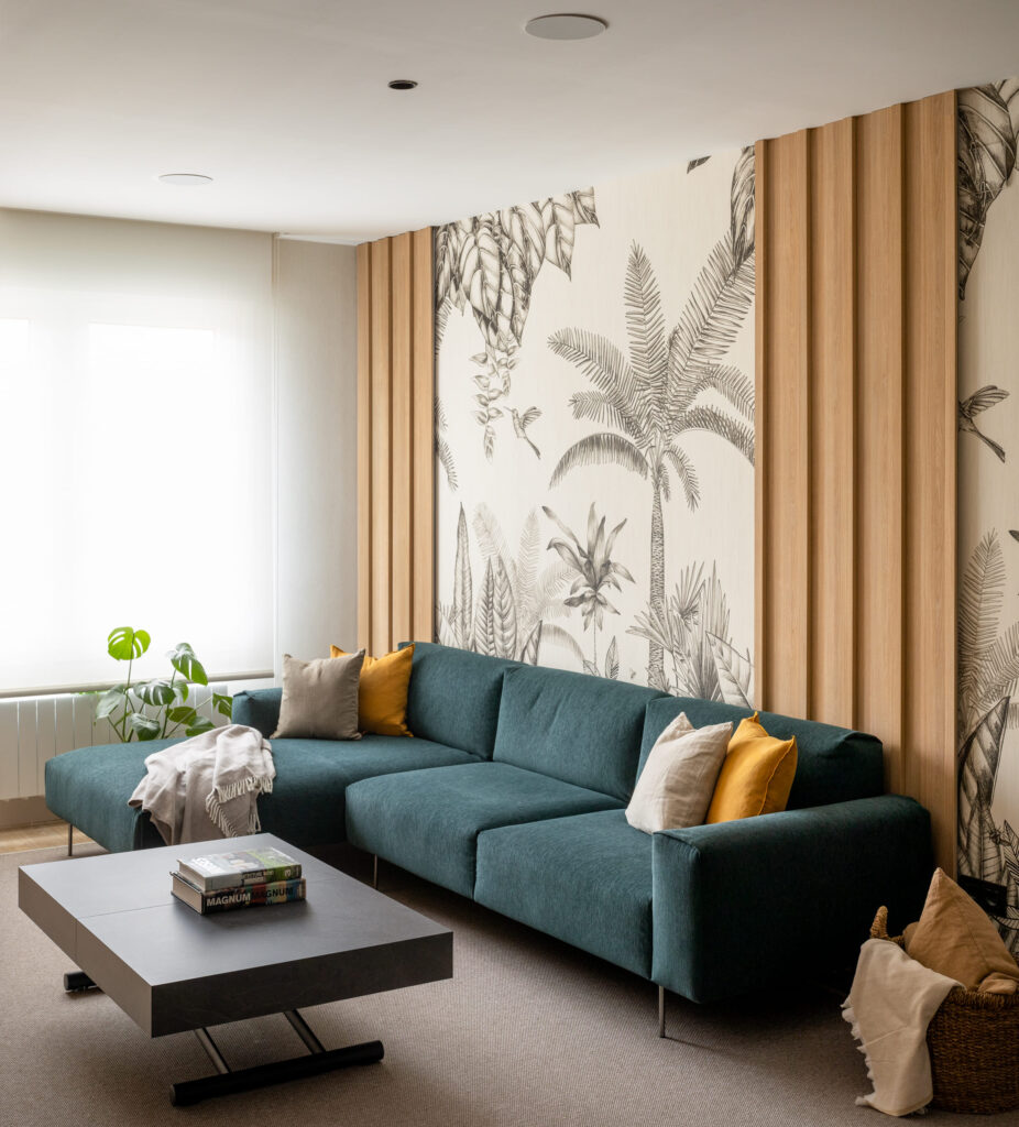 La madera y los colores verdes agua son los protagonistas indiscutibles de esta transformación. La madera, con su calidez y versatilidad, se integra en suelos, muebles y detalles decorativos, aportando una sensación acogedora a cada rincón. Los verdes agua, por su parte, añaden un toque de frescura y serenidad, creando un equilibrio perfecto con la naturaleza que se filtra desde el exterior.