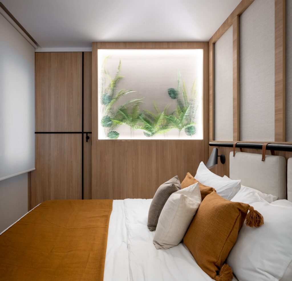 La paleta de colores alegres, tomada de la vibrante planta de la vainilla, se convierte en el lienzo sobre el cual se pinta esta obra maestra de diseño interior. Cada rincón de la vivienda respira frescura y vitalidad, emulando la sensación de estar inmerso en un exuberante bosque tropical. Los motivos vegetales dan vida a las paredes, cuadros y accesorios, creando una armonía visual que conecta la vivienda con la naturaleza de una manera única.