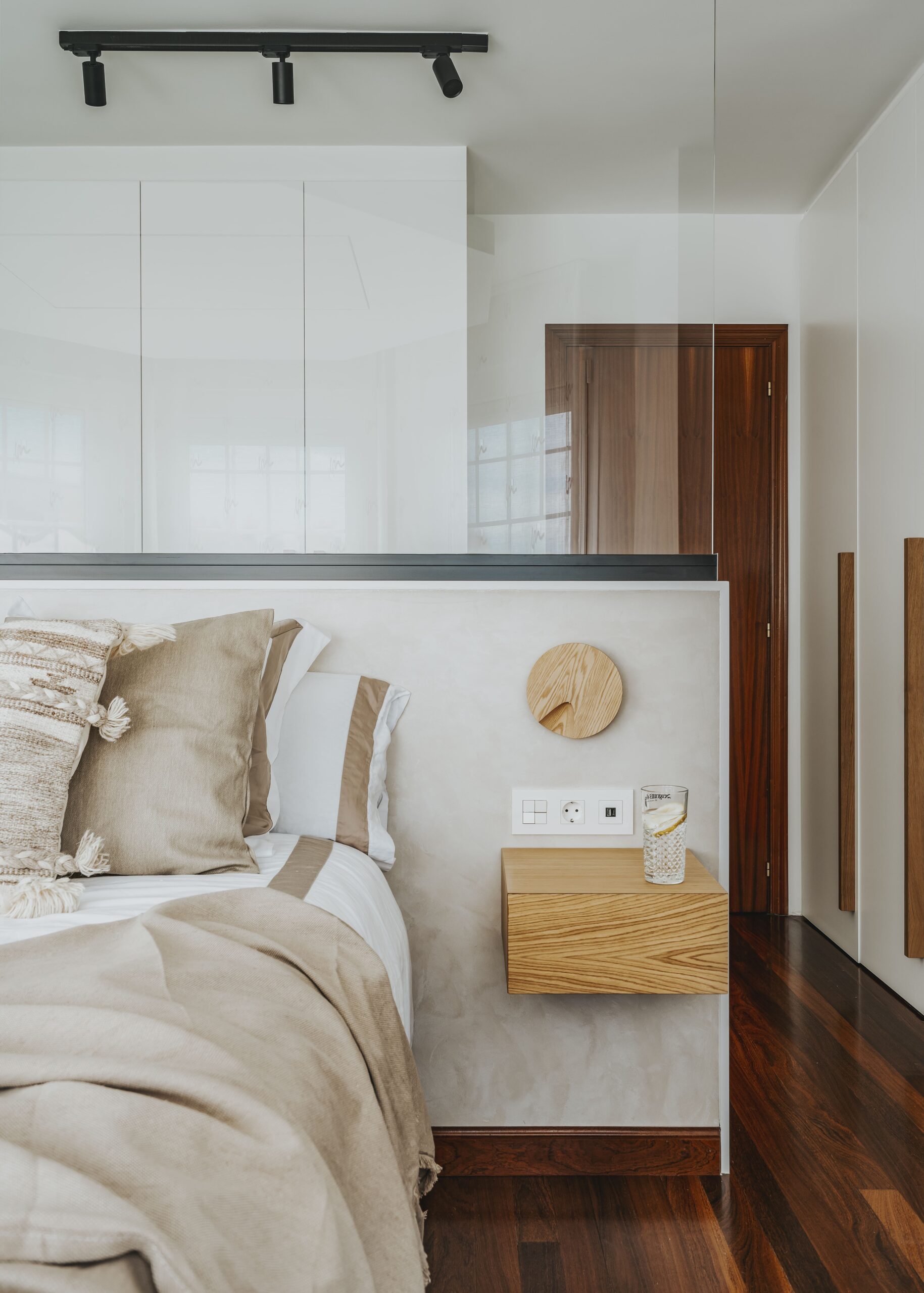 Projects, ResidentialEn este proyecto, Ángela Acevedo de 3A Interiorismo ha creado un dormitorio con baño integrado que respira tranquilidad y sofisticación. La paleta de tonos claros del dormitorio aporta una atmósfera apacible, mientras que el revestimiento del baño asegura una continuidad visual sin interrupciones.