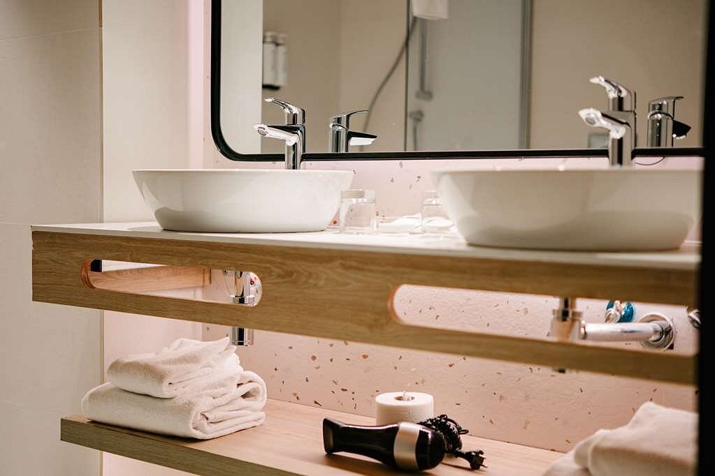 Uno de los aspectos donde se nota esta armonía es en la elección de los lavabos Lieja de Bathco en los baños. Estos lavabos tienen un diseño elegante y funcionalidad, que añaden un toque a los baños de las habitaciones.