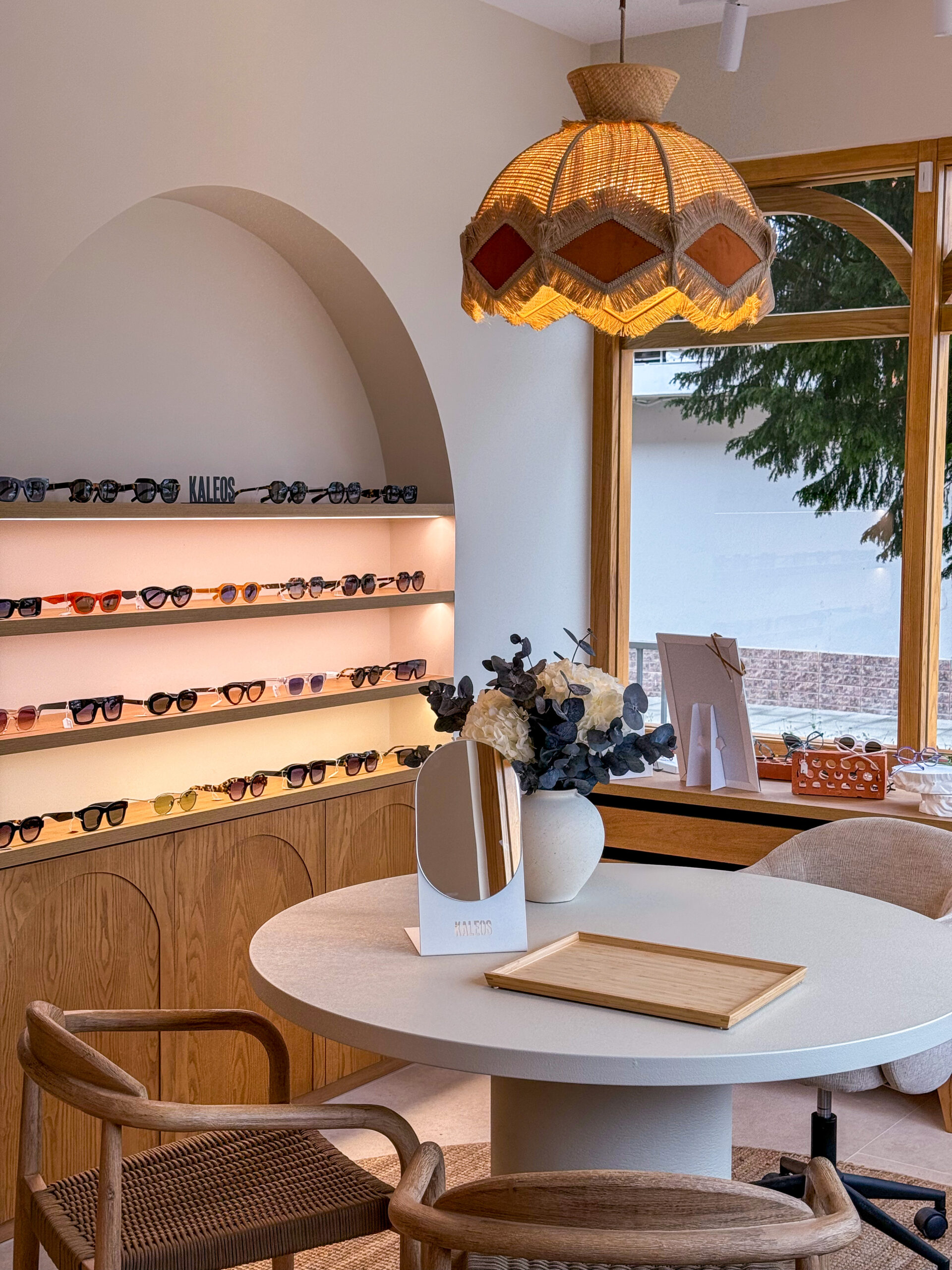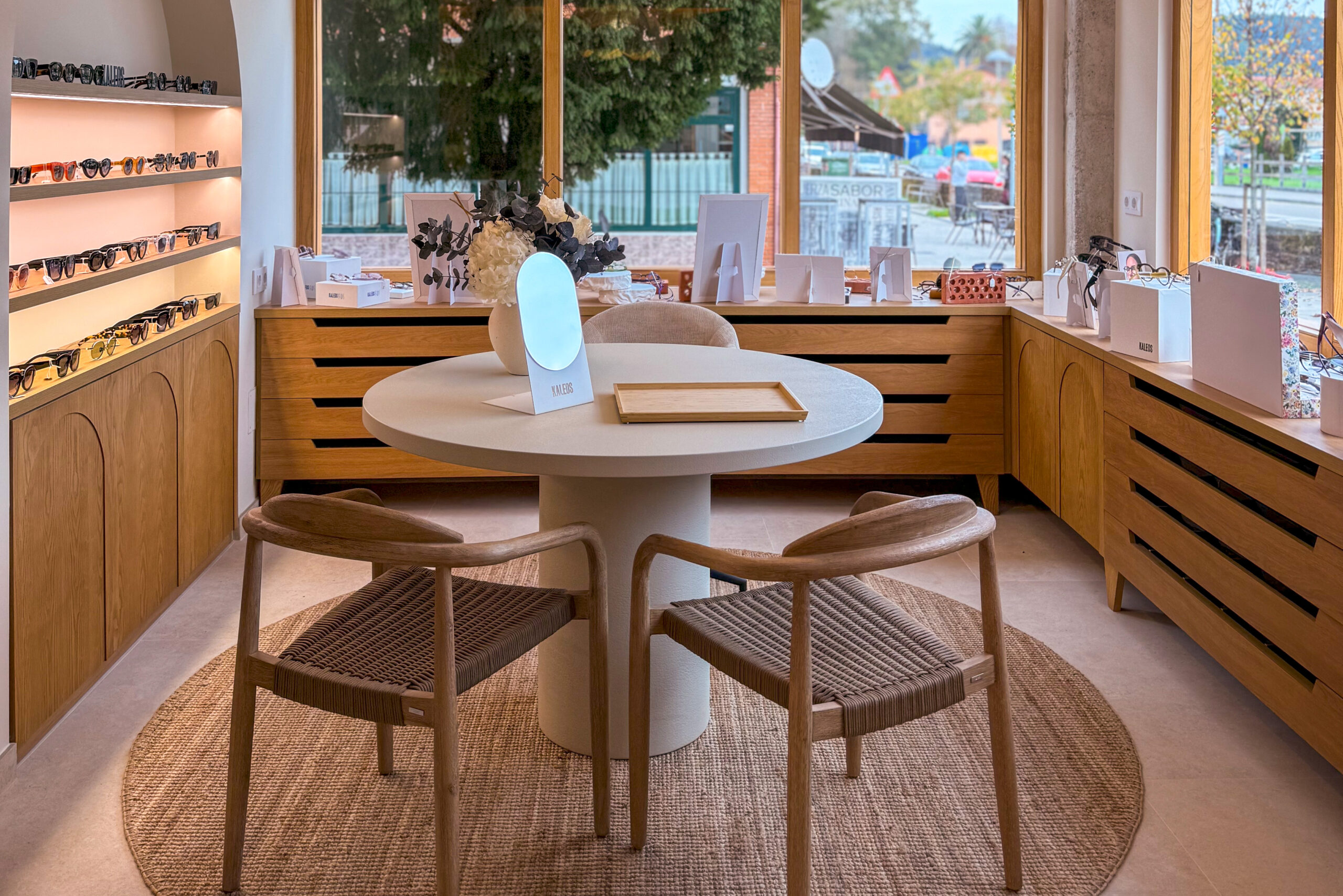 Desde el reparto de los espacios, hasta la paleta de colores, el diseño de mobiliario, textiles y la selección minuciosa de materiales, Cristina ha conseguido trasladar una sensación de hogar a esta óptica, marcando la diferencia en cómo se perciben los espacios de salud visual.