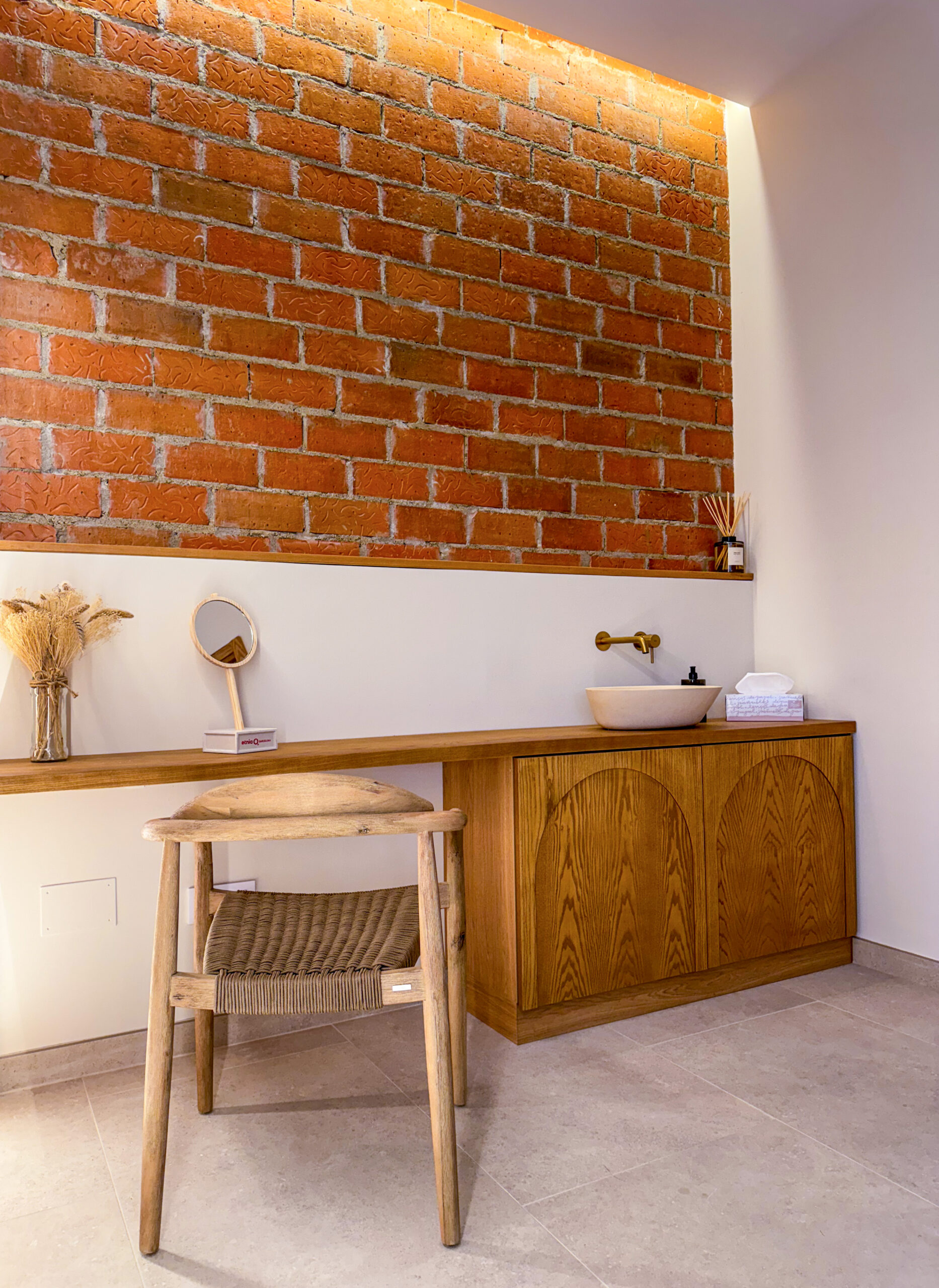 El objetivo de este diseño era claro: alejarse de la frialdad típica de los espacios comerciales y ofrecer a los visitantes una experiencia cálida y relajante. Para ello, la madera se convierte en la protagonista del proyecto, estando presente tanto en el mobiliario como en las puertas. Cada pieza ha sido diseñada y fabricada a medida por carpinteros de confianza, aportando un carácter único y artesanal al entorno. El espacio logra un equilibrio perfecto entre estética y funcionalidad, destacando la tranquilidad y la paz visual que buscaban los propietarios.