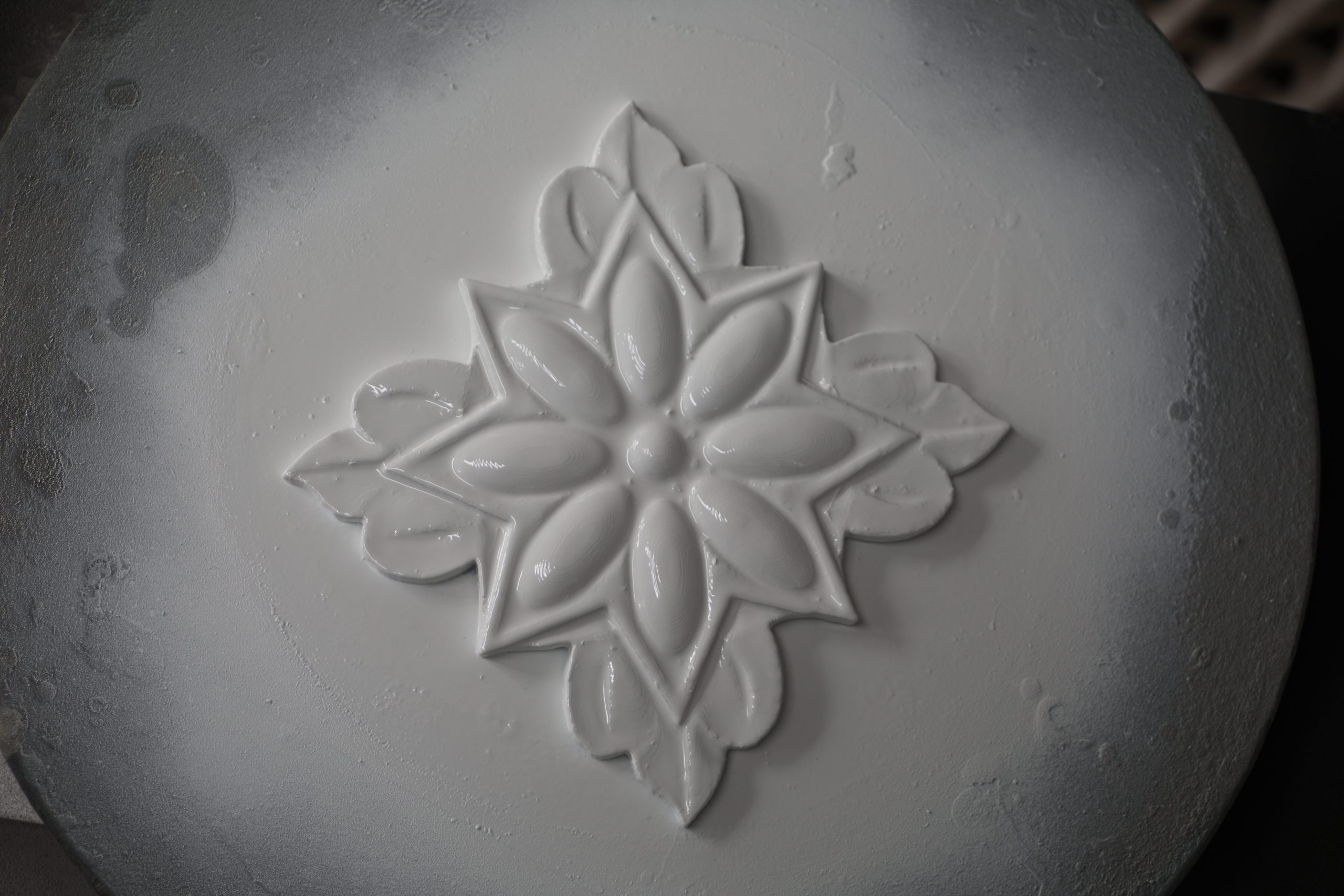 Los artistas del Atelier se han encargado de recrear esas características baldosas polícromas y profusamente decoradas de la época, inspiradas el auge del movimiento Art Nouveau y en pleno “boom” de la arquitectura Victoriana residencial.Su elaboración ha sido muy especial porque se ha realizado al revés de cómo se suele imaginar. Se ha trabajado primero con técnicas digitales, diseñadas por ordenador e impresas con máquinas 3D, para luego implementar la artesanía, sacando un negativo en escayola, introduciendo pasta cerámica a presión. Para posteriormente, hornear y esmaltar a mano cada azulejo individualmente.