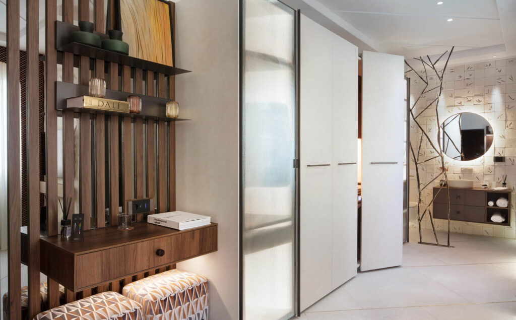 La propuesta consiste en una evolución natural de un alojamiento urbano que se puede ver en el espacio 49. El estudi de interiorismo propone una solución habitacional que resuelve todos los usos necesarios para disfrutar de la gran ciudad en un lugar de descanso, trabajo y relax. El proyecto se centra en la funcionalidad del mobiliario, la selección cuidada de materiales, el control de la tecnología y el cuidado de los detalles harán de la estancia toda una experiencia