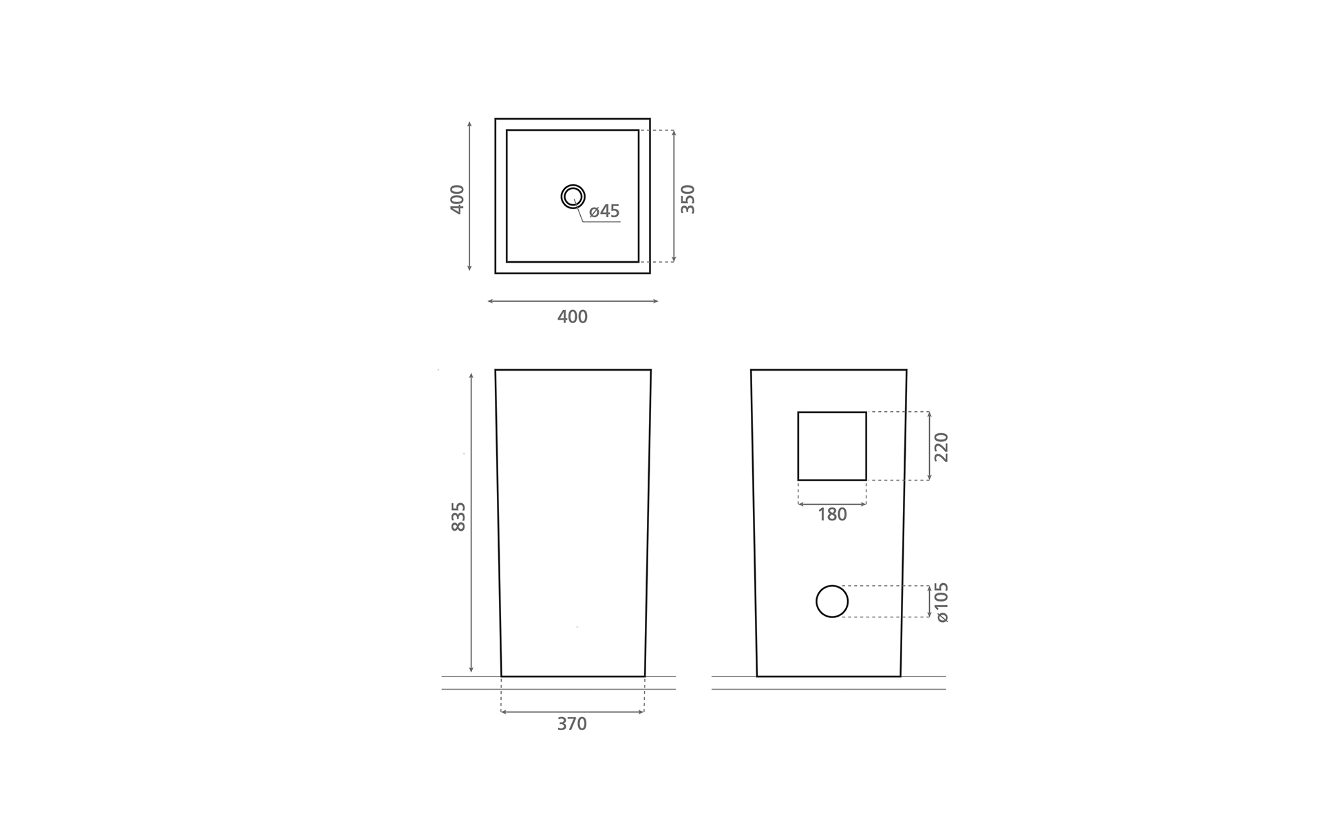 La porcelana se eleva en un diseño de pedestal que aporta verticalidad y presencia al espacio. Su formato cuadrado transmite solidez y un aire clásico reinterpretado con un acabado brillante.