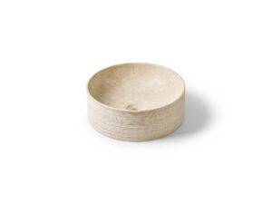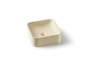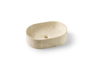 Series of natural stone washbasins, available in circular, square or oval format. All in beige finish, they transmit sobriety and simplicity.