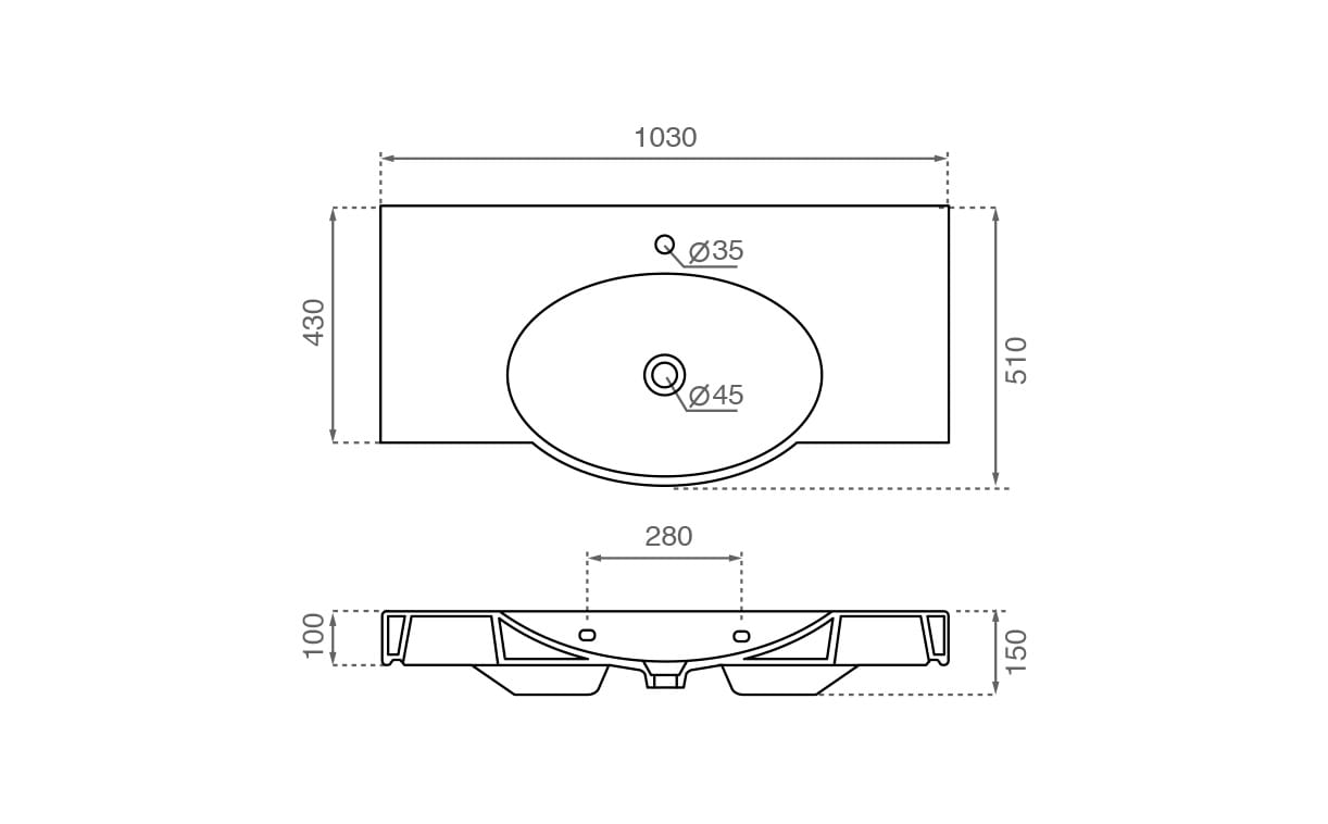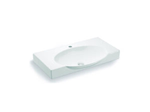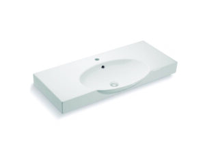 Lavabo rectangular suspendido en porcelana brillo. Un diseño despejado y contemporáneo que libera superficie y aligera el espacio.