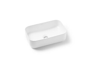 Formato mini y planta cuadrada en porcelana brillo. Un lavabo de sobre encimera pensado para optimizar el espacio sin renunciar al diseño.