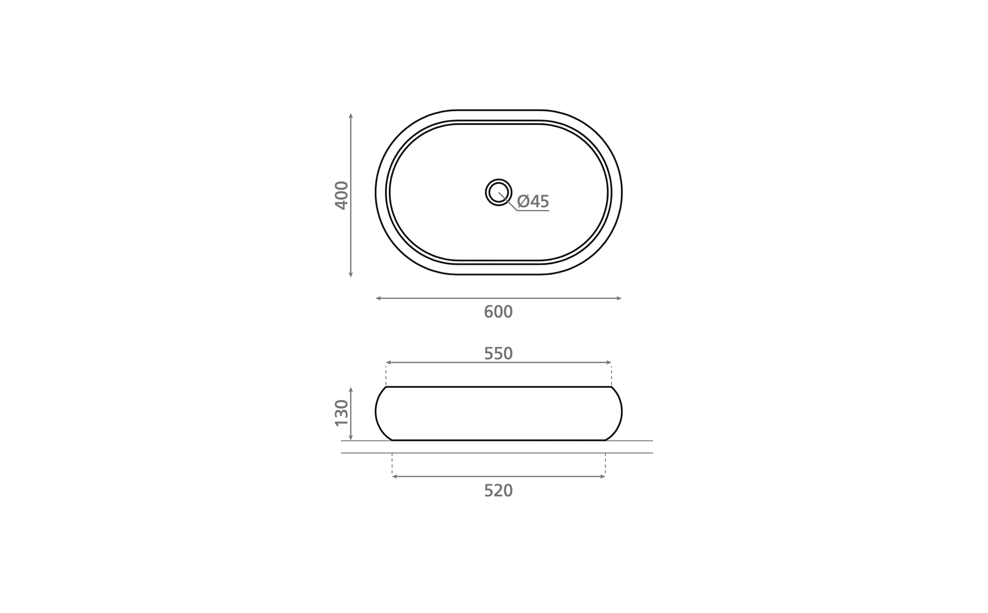 La versión en piedra negra multiplica el contraste. Un lavabo oval de sobre encimera que refuerza el carácter del baño.