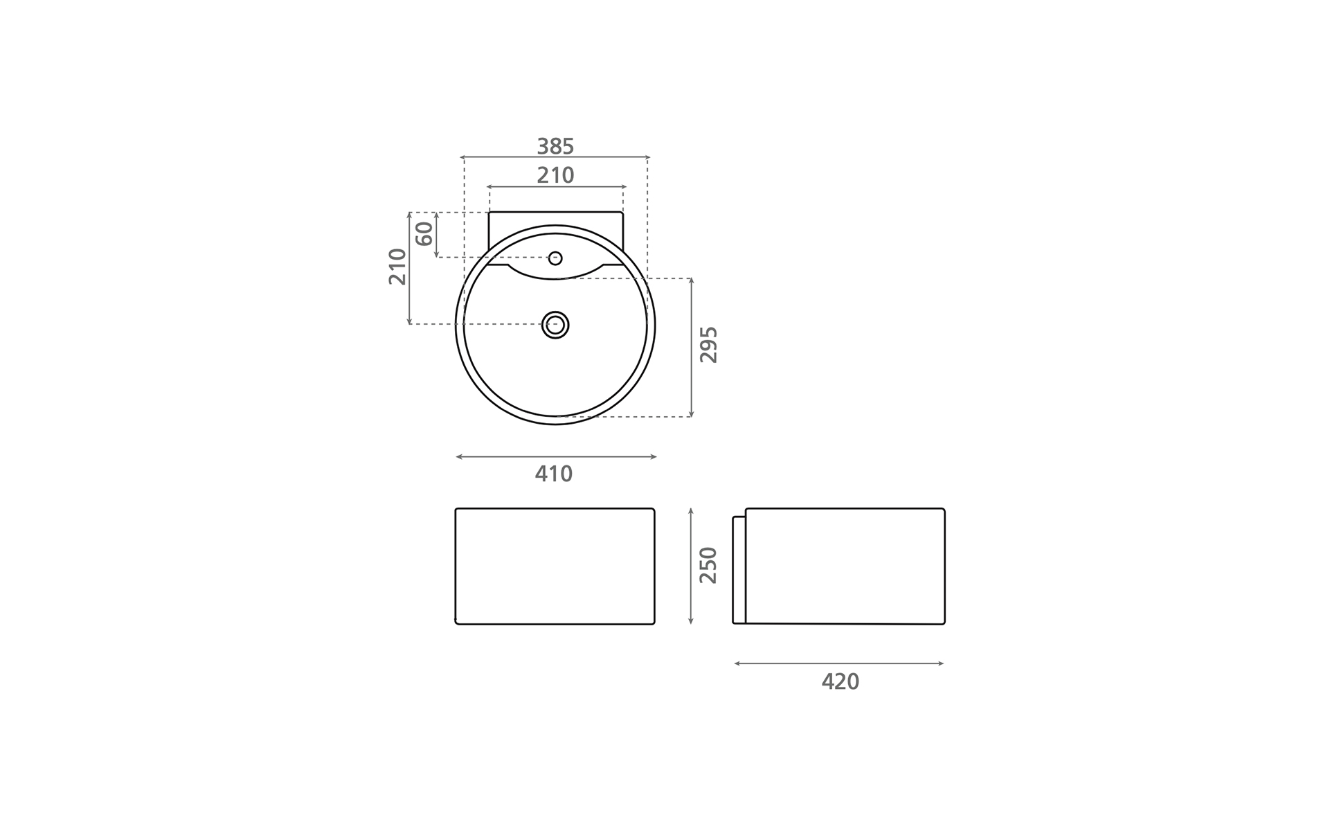 Lavabo suspendido en porcelana brillo con rebosadero. Un diseño circular que une sobriedad y ligereza formal.