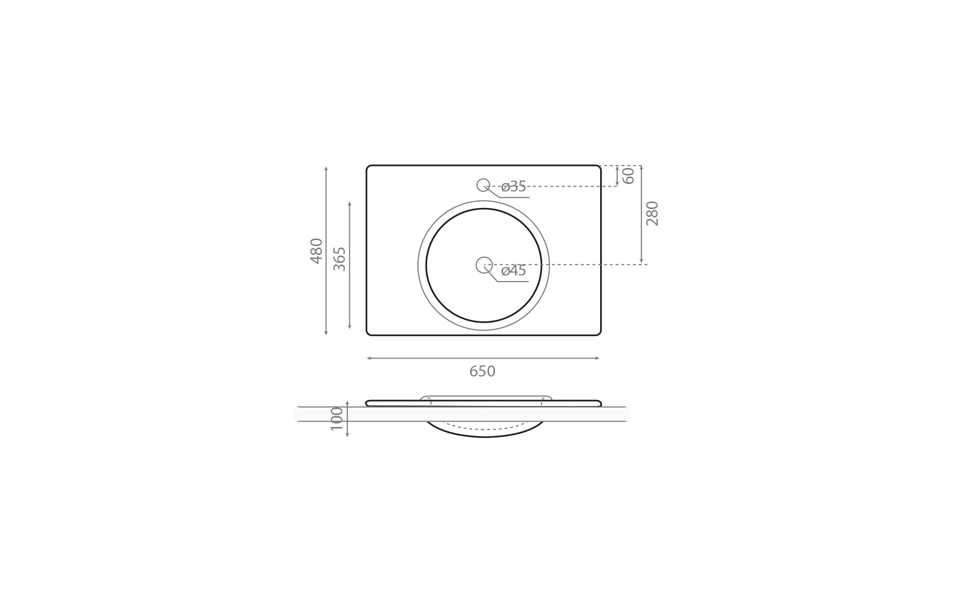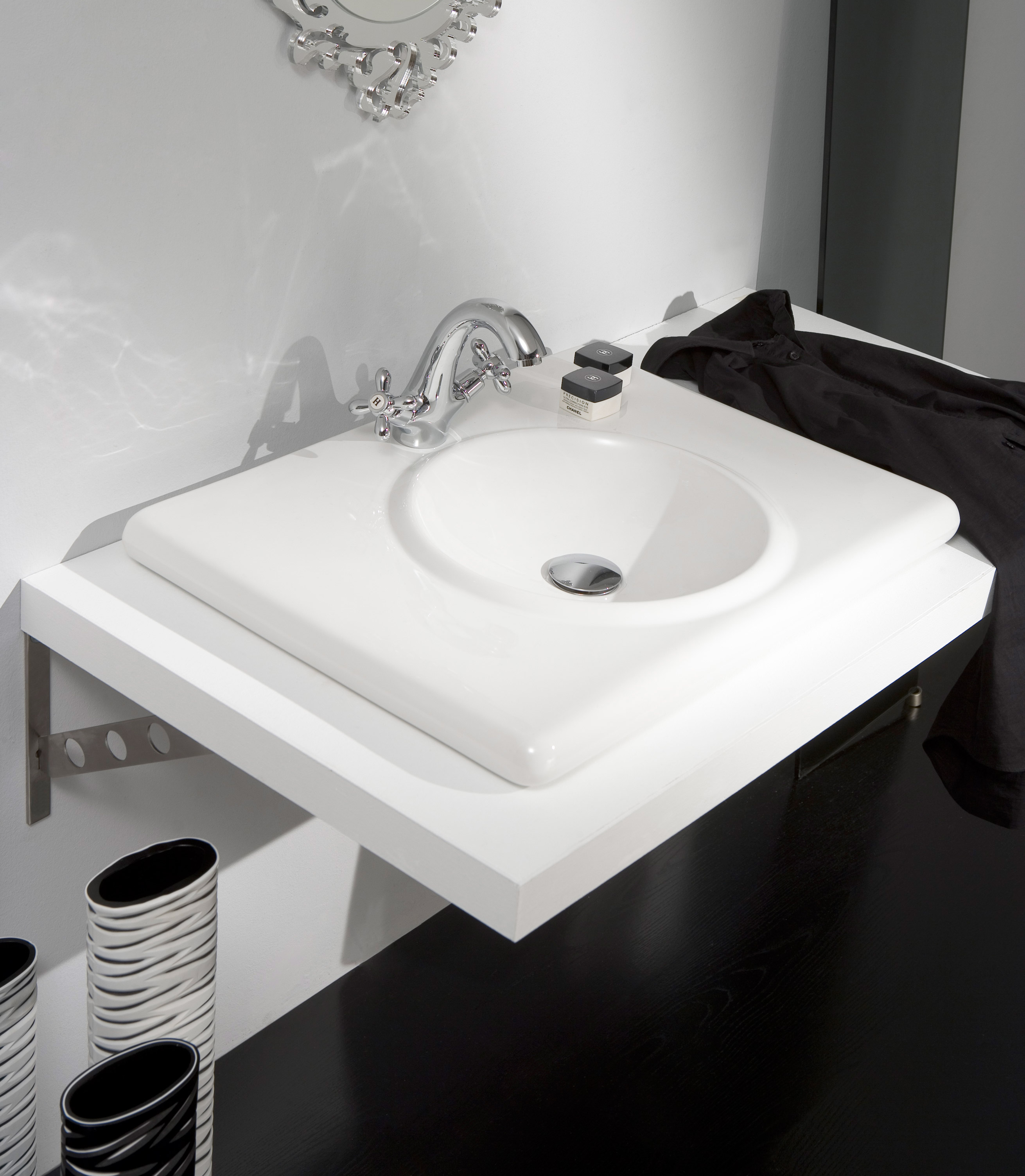 Lavabo rectangular en porcelana blanca de instalación semiencastre. Disponible en varios tamaños, sin rebosadero, aporta ligereza visual y sencillez.