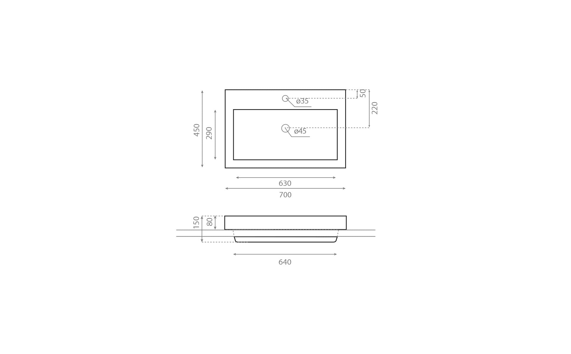Lavabo rectangular en porcelana brillo de instalación sobre mueble o suspendido. Con rebosadero integrado, combina sobriedad y funcionalidad.