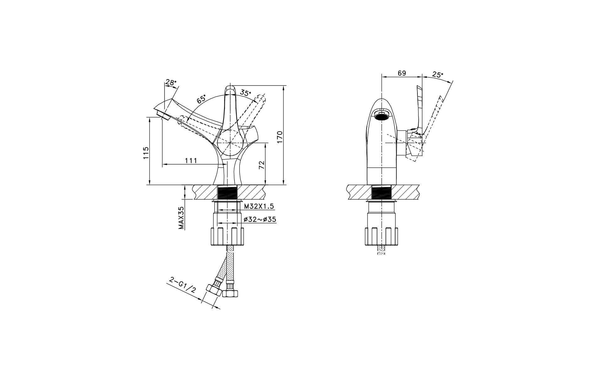 Versión de caño bajo en acabado blanco. Ideal para lavabos compactos o de mueble.