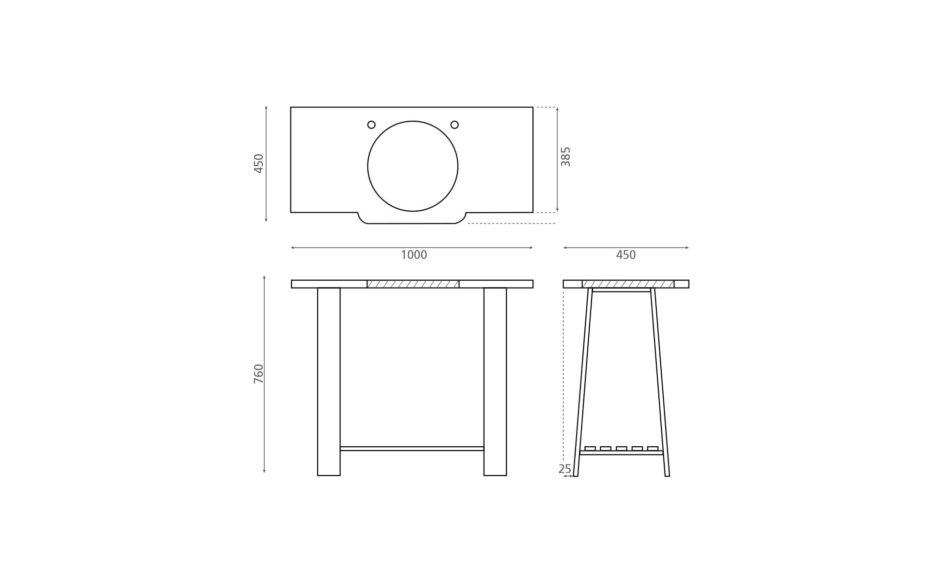 Conjunto que integra mueble de madera natural con encimera lacada en blanco, gris mate o negro mate, acompañado del lavabo Miami.