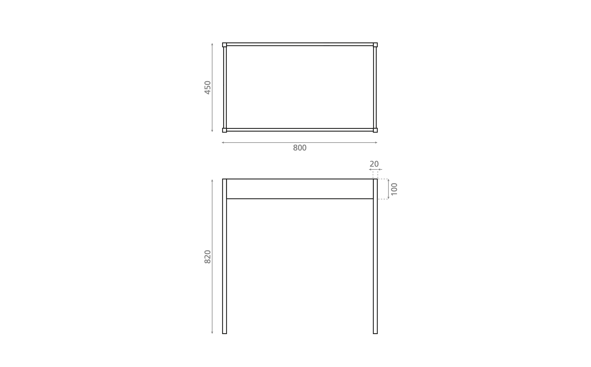 Estructura metálica en acero inoxidable, en acabado negro o blanco. Puede combinarse con encimera y lavabo sobre encimera o con el lavabo Liébana. Se completa con encimeras y repisas en roble o negro.