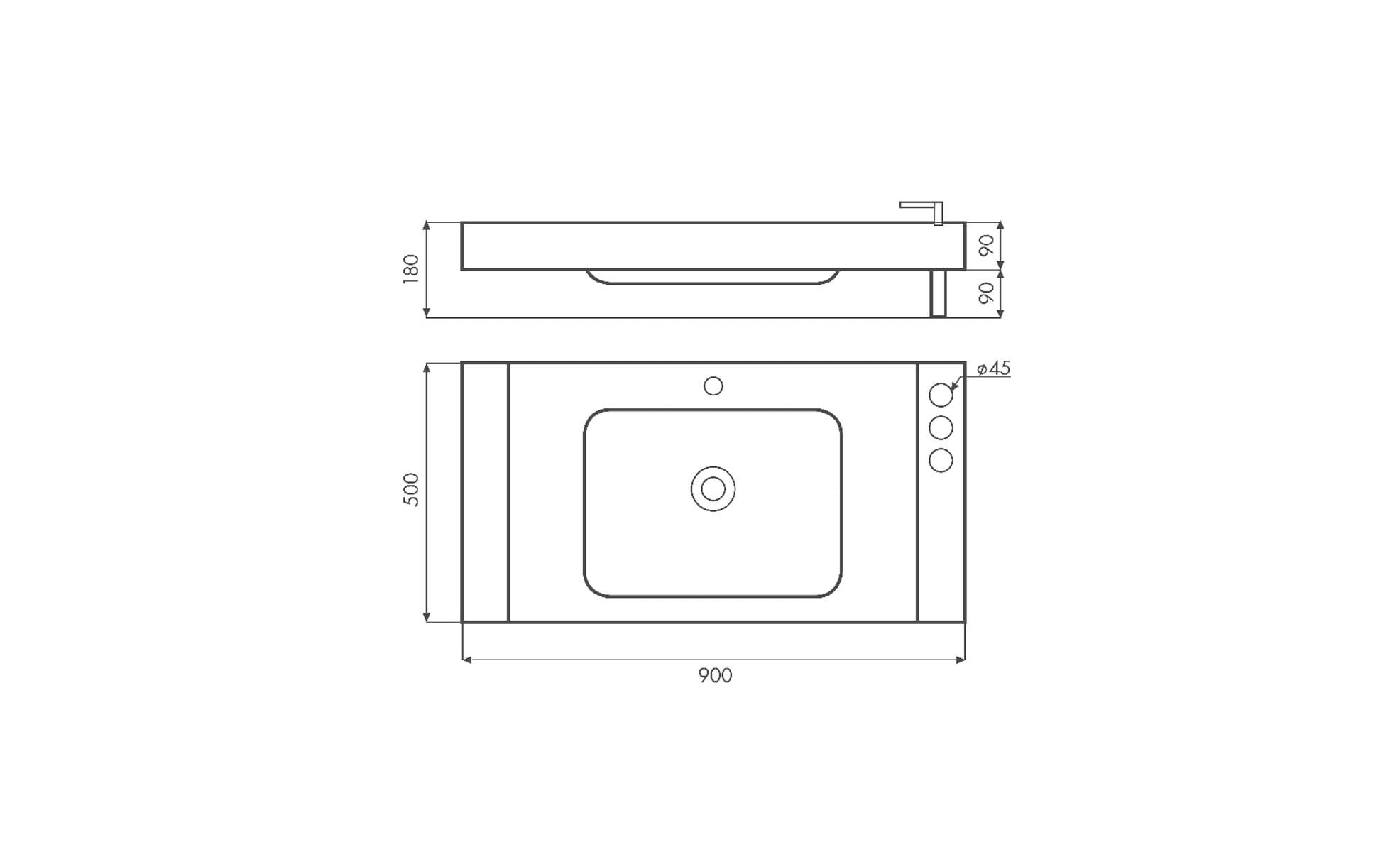 Lavabos rectangulares en solid surface blanco, de instalación semiencastre o sobre mueble con encimera de acero inoxidable. Varias medidas disponibles, combinan resistencia y un diseño depurado.