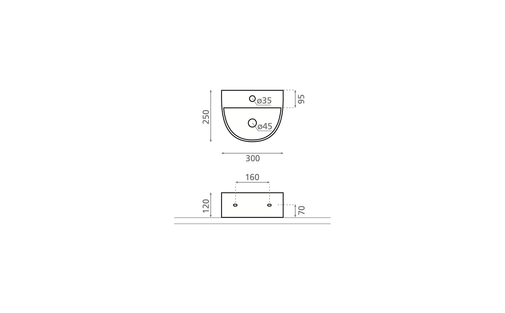 Lavabo mini en porcelana blanca brillo. Puede instalarse suspendido o sobre encimera, ofreciendo versatilidad en espacios reducidos.