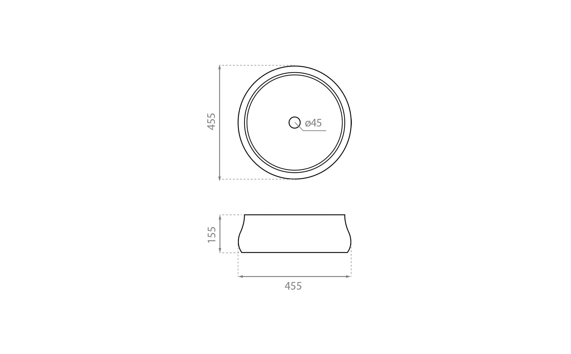 Lavabo circular en porcelana blanca con exterior en gris de tacto gomoso. Un contraste delicado que aporta personalidad y modernidad a la pieza.