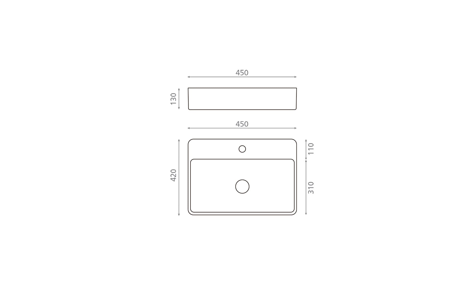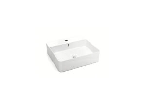 Rectangular washbasin in gloss white porcelain, in two sizes and with countertop or wall-mounted installation. A versatile and timeless solution.
