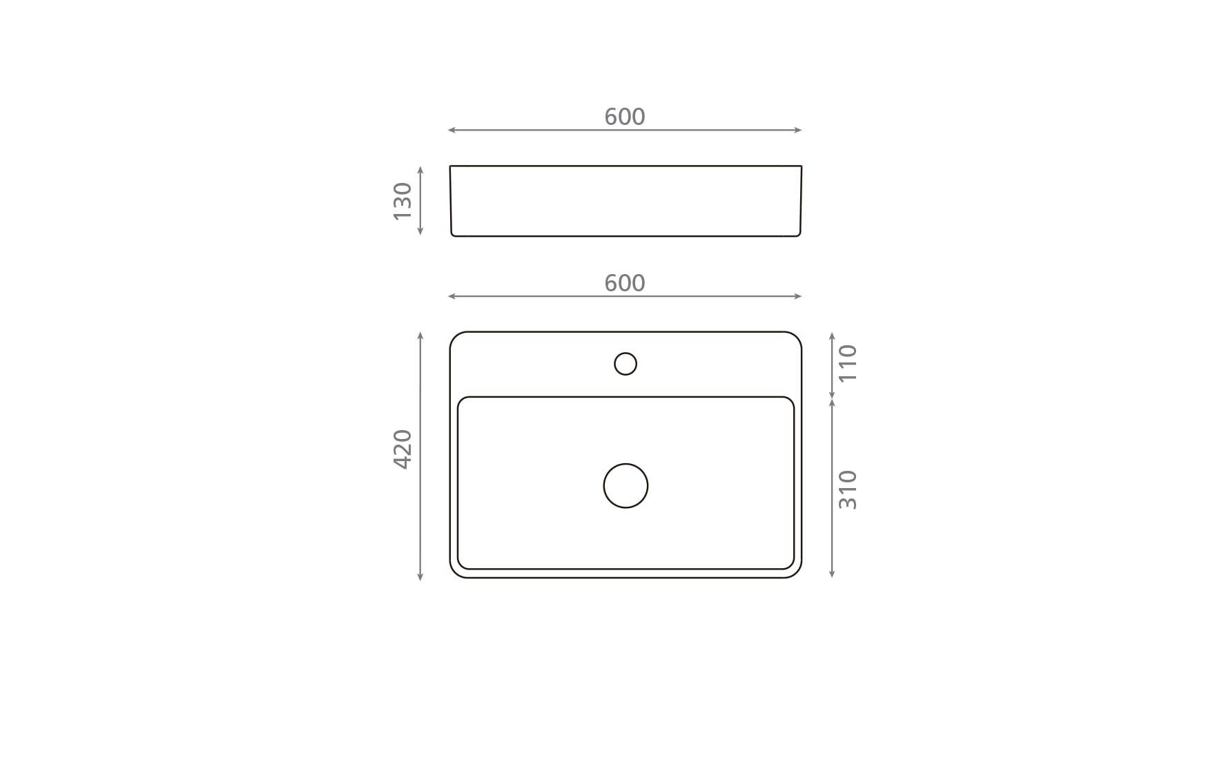 Rectangular washbasin in gloss white porcelain, in two sizes and with countertop or wall-mounted installation. A versatile and timeless solution.