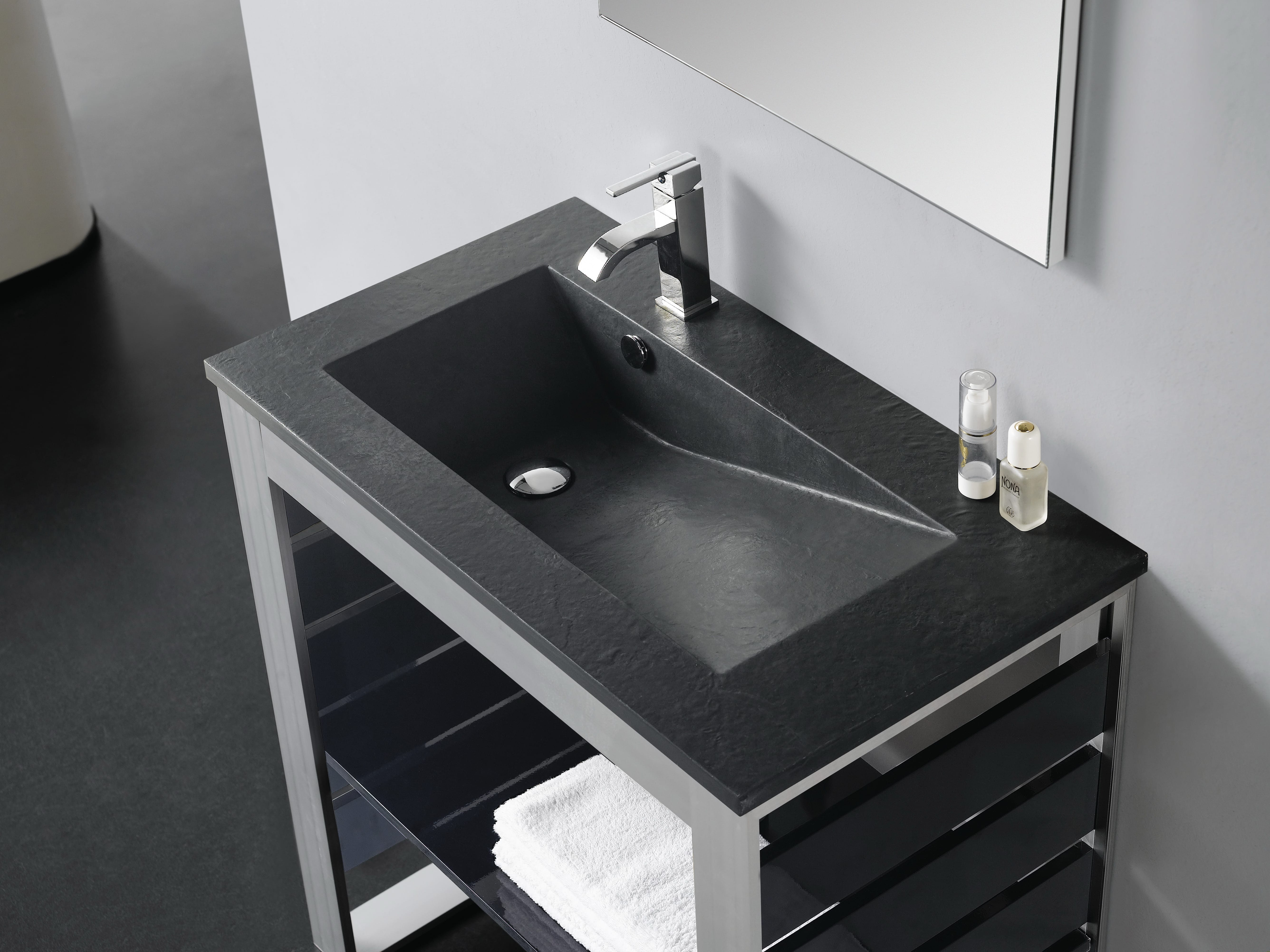 Lavabo en resina con acabado negro pizarra aporta un carácter más rotundo y sofisticado. Ideal para crear contraste con encimeras claras o materiales naturales.