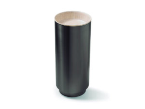 Circular bamboo washbasin with stainless steel exterior. A combination of natural materials and resistance that brings warmth and a unique character to the bathroom.