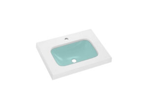 Lavabo suspendido de resina en diferentes acabados de color. Su diseño cuadrado y ligero introduce un acento vibrante y actual en el baño.