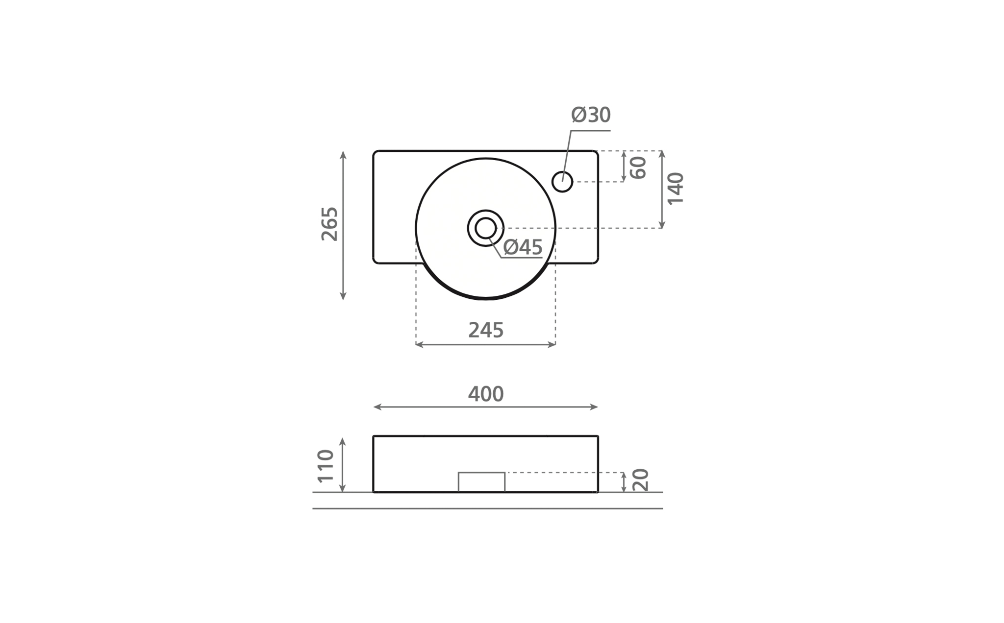 Mini white porcelain washbasin. Compact and functional, it adapts to both suspended and countertop installation, ideal for small spaces.