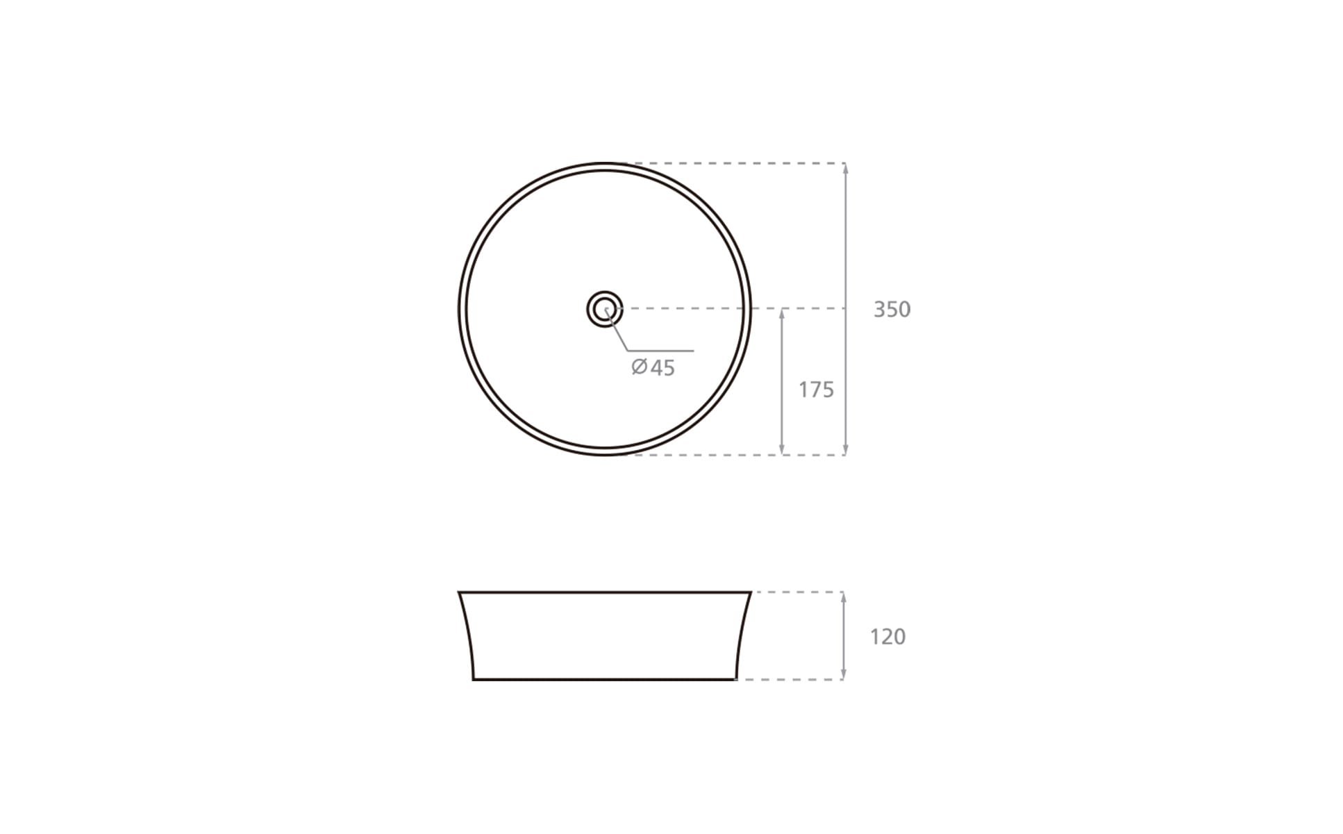 Lavabo circular de porcelana blanca, disponible en dos tamaños. Una propuesta esencial, sencilla y atemporal para baños funcionales.