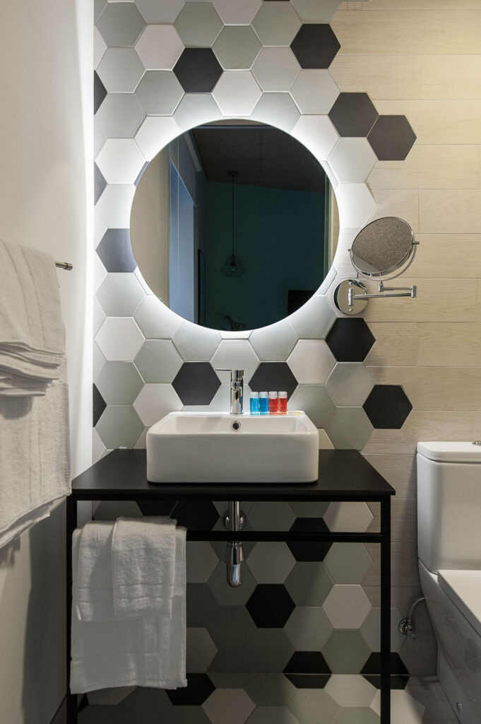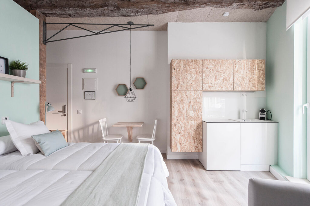 Las habitaciones tienen nombre propio: Industrial, Noir, Salitre, Luana, París, Menta y Limón y en ellos se pueden encontrar lavabos de Bathco que el estudio escogió específicamente para que encajasen con el tema de cada uno de los apartamentos. En los apartamentos Luana y Noir se puede encontrar el lavabo Nilo, en Limón y en Menta está presente el lavabo Santander y en el apartamento París, el lavabo Cáceres. Además el sello cántabro también está presente gracias a los mosaicos de Hisbalit.