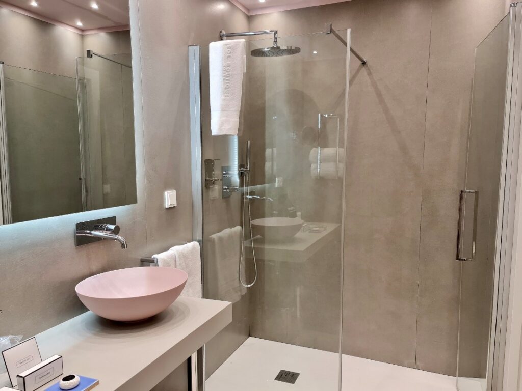 Ya vimos el lavabo Lysa en tonos rosas en la Double Premium y vuelve a estar en la habitación 101 Bohéme.