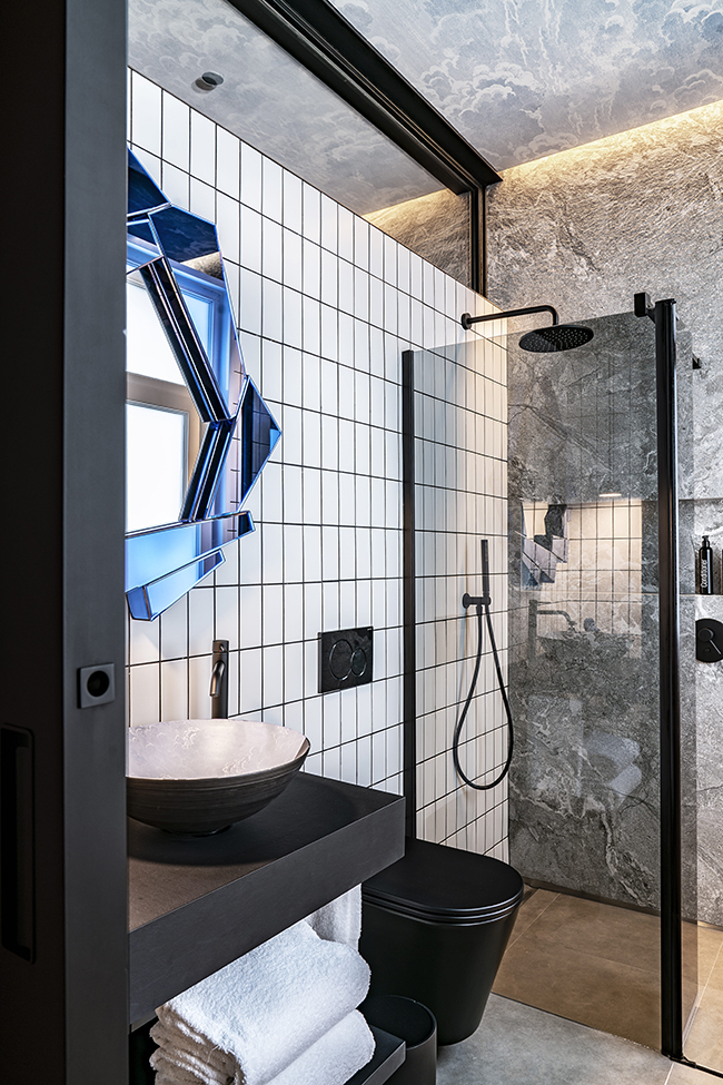 En este piso no hay miedo a mezclar colores, texturas ni estampados. Incluso, no hay miedo a combinar estilos. Y el resultado es muy llamativo y atrevido incluso en sus baños.