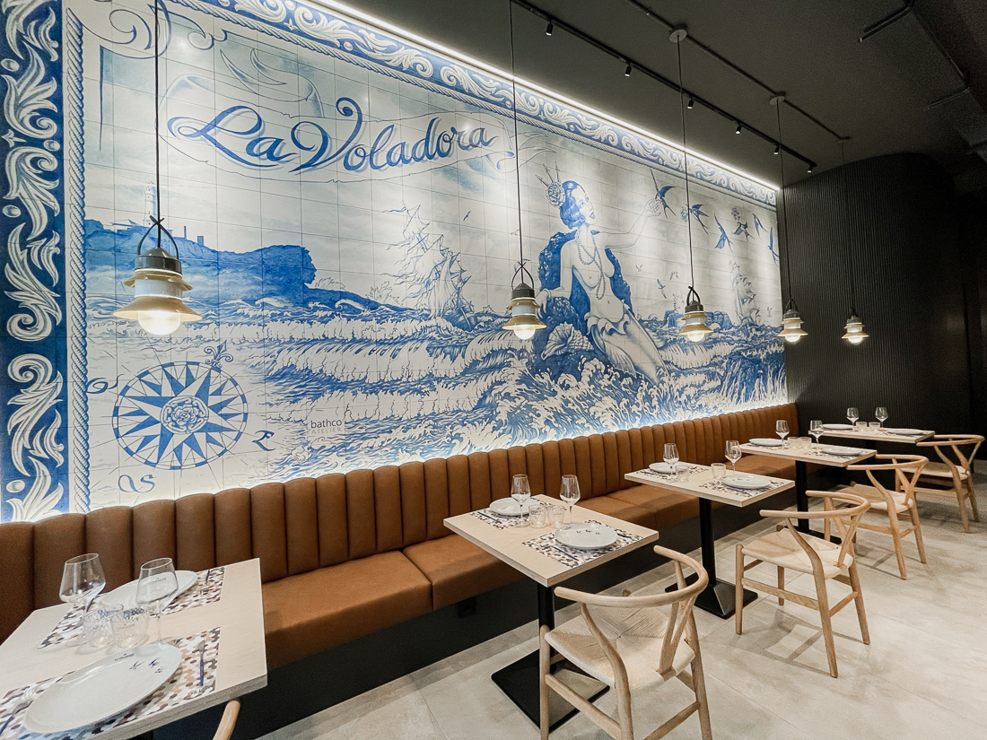 Alfonso Piñero fue el encargado de realizar la ilustración que preside el comedor principal del restaurante en el que no faltan referencias a la ciudad de Santander. El artista quisorepresentar “a ‘La Voladora’ de forma alegórica con la figura de una sirena (que no tiene piernas, como la protagonista), el faro de Cabo Mayor, los barcos entrandoa la bahía, incluso la roca de la playa del Camello, etc.».